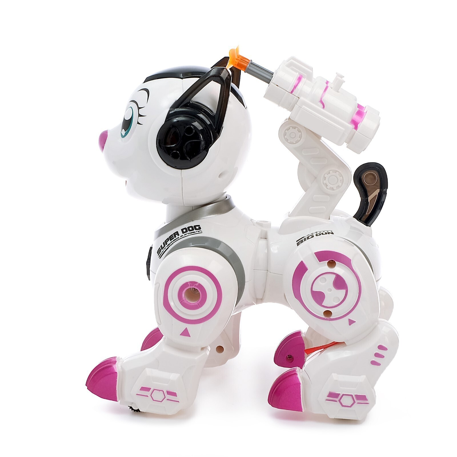 Робот-игрушка «Собака Рокки», стреляет, световые эффекты, работает от батареек, цвет розовый, уценка