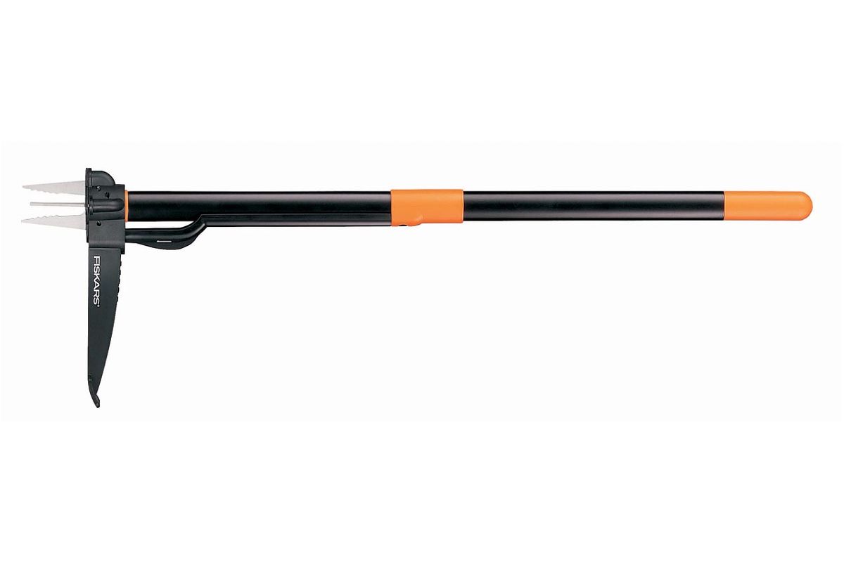 Грабли FISKARS 139910 — грабли для удаления сорняков. Используются для ухода за садом, огородом. Зубья выполнены из нержавеющей стали. Ручка имеет удобную для работы длину. Грабли эффективно удаляют сорняки без использования дополнительных средств. Зубья со всех сторон захватывают корень. Длина рукоятки — 1000 мм.