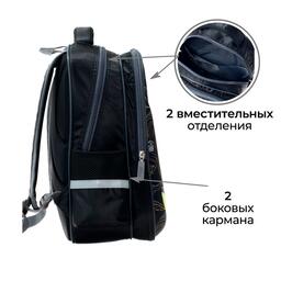 Рюкзак содержит два отделения на молнии, два боковых кармана, один внутренний карман.