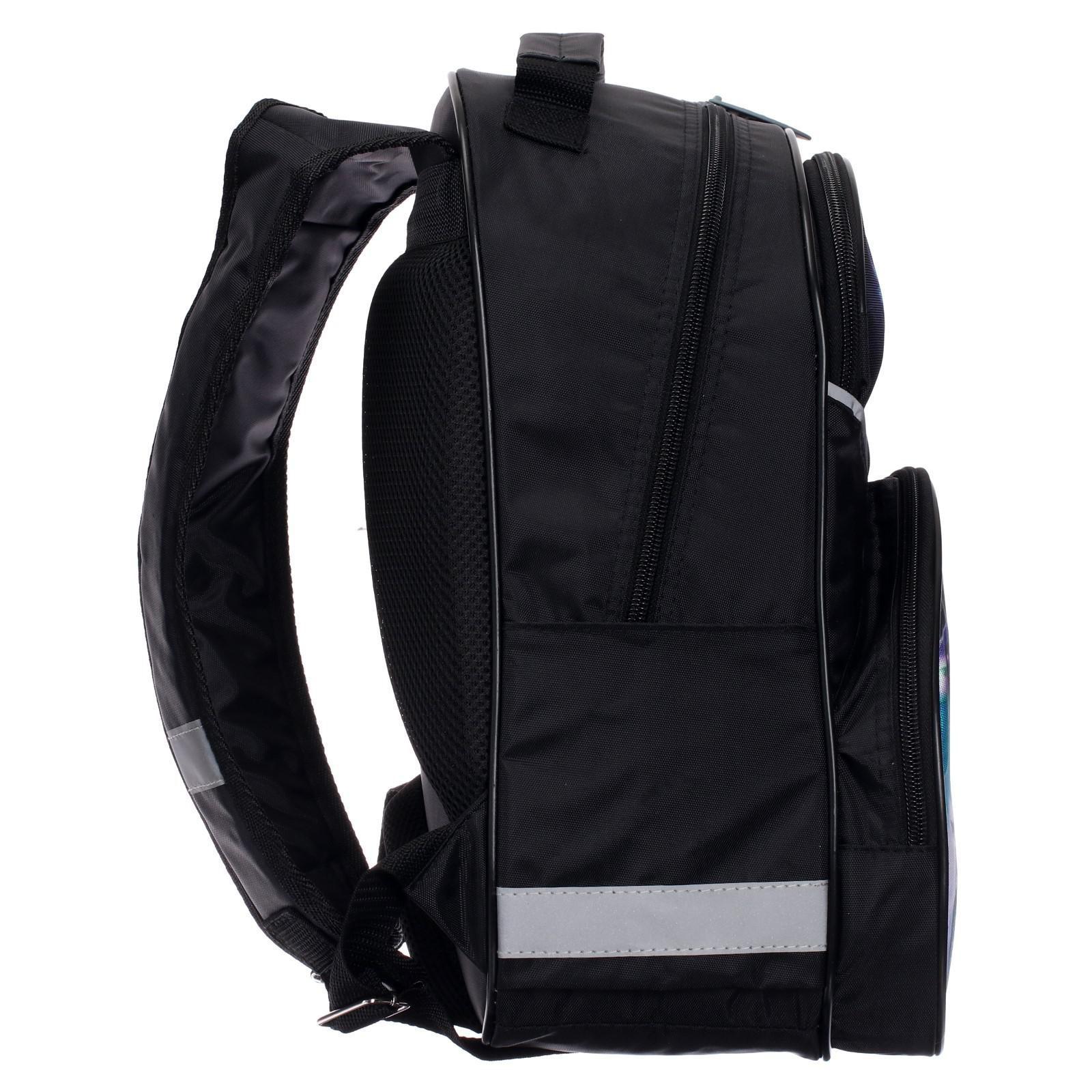 Ученический ранец для детей младшего школьного возраста. Предназначен для переноски личных вещей и школьно-письменных принадлежностей. Выполнен из прочного непромокаемого материала с покрытием ПВХ. Оригинальный дизайн на фронтальной поверхности изделия.