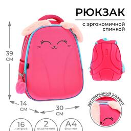 Рюкзак каркасный школьный Calligrata "Розовый зайка", 39 х 30 х 14 см