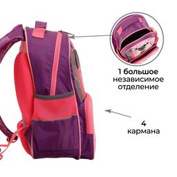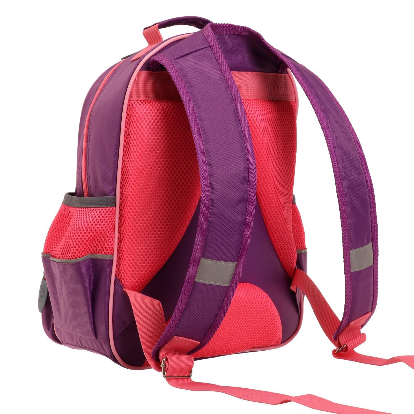 Ученический ранец для детей младшего школьного возраста предназначен для переноски личных вещей и школьно-письменных принадлежностей. Ранец выполнен из прочного непромокаемого материала с покрытием ПВХ. Оригинальный дизайн на фронтальной поверхности изделия.