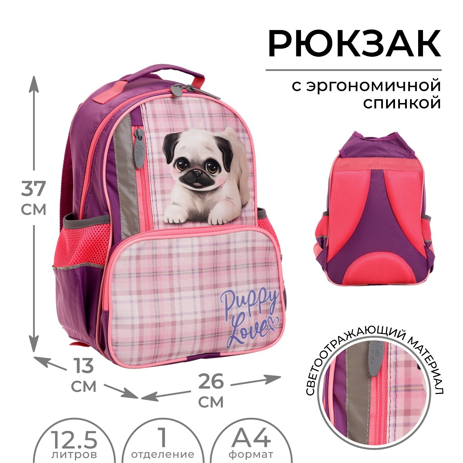 Рюкзак школьный Calligrata "Мопсик", 37 х 26 х 13 см, эргономичная спинка