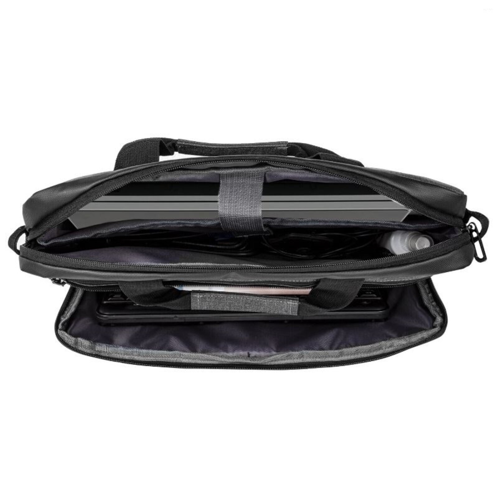 Оригинальный и лаконичный дизайн подчеркивает статус владельца. Внешние карманы, вместительное отделение позволяют упорядоченно разложить множество необходимых вещей помимо ноутбука. Документы формата А4 с легкостью поместятся в основном отделении и в наружном кармане.
