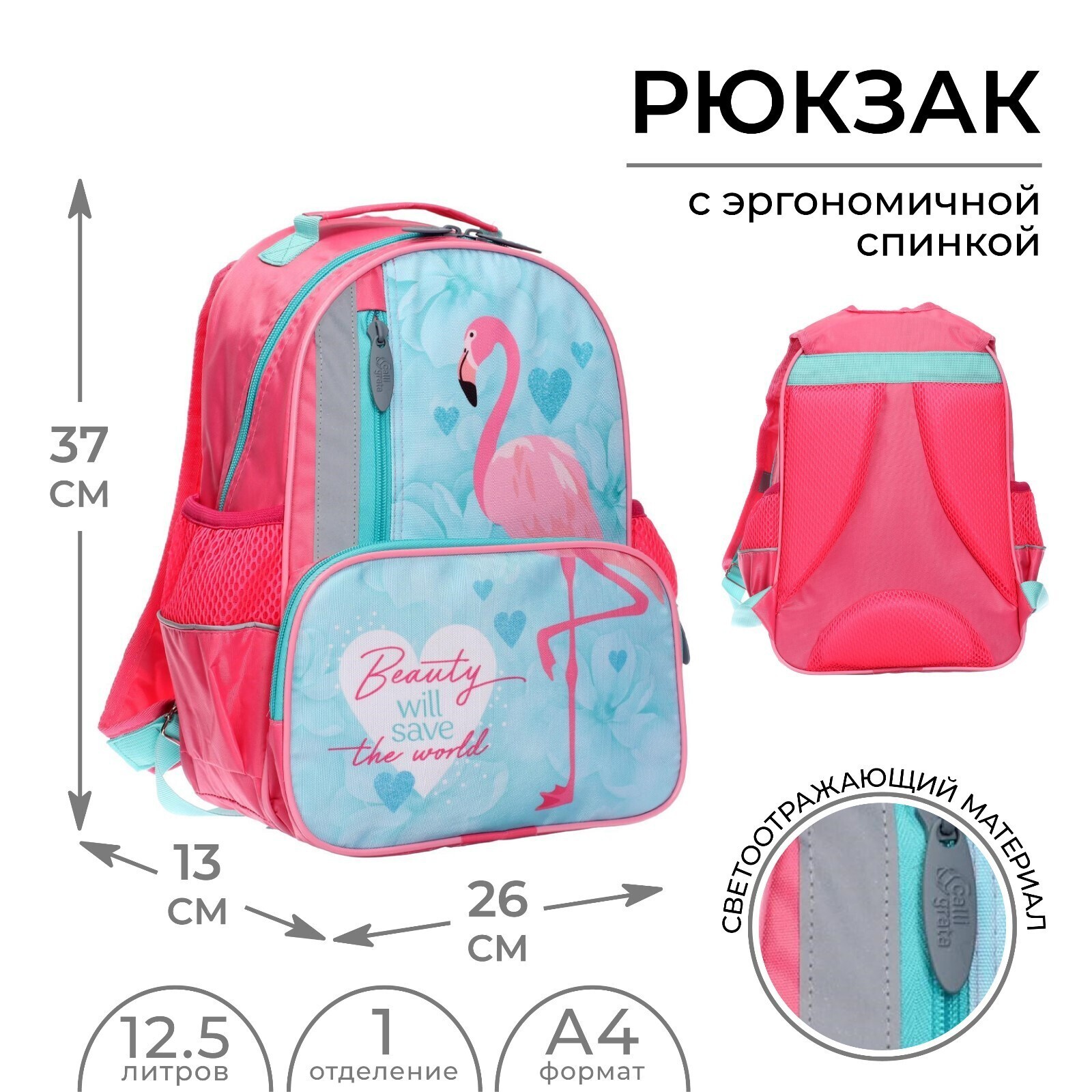 Рюкзак школьный Calligrata "Фламинго", 37 х 26 х 13 см, эргономичная спинка