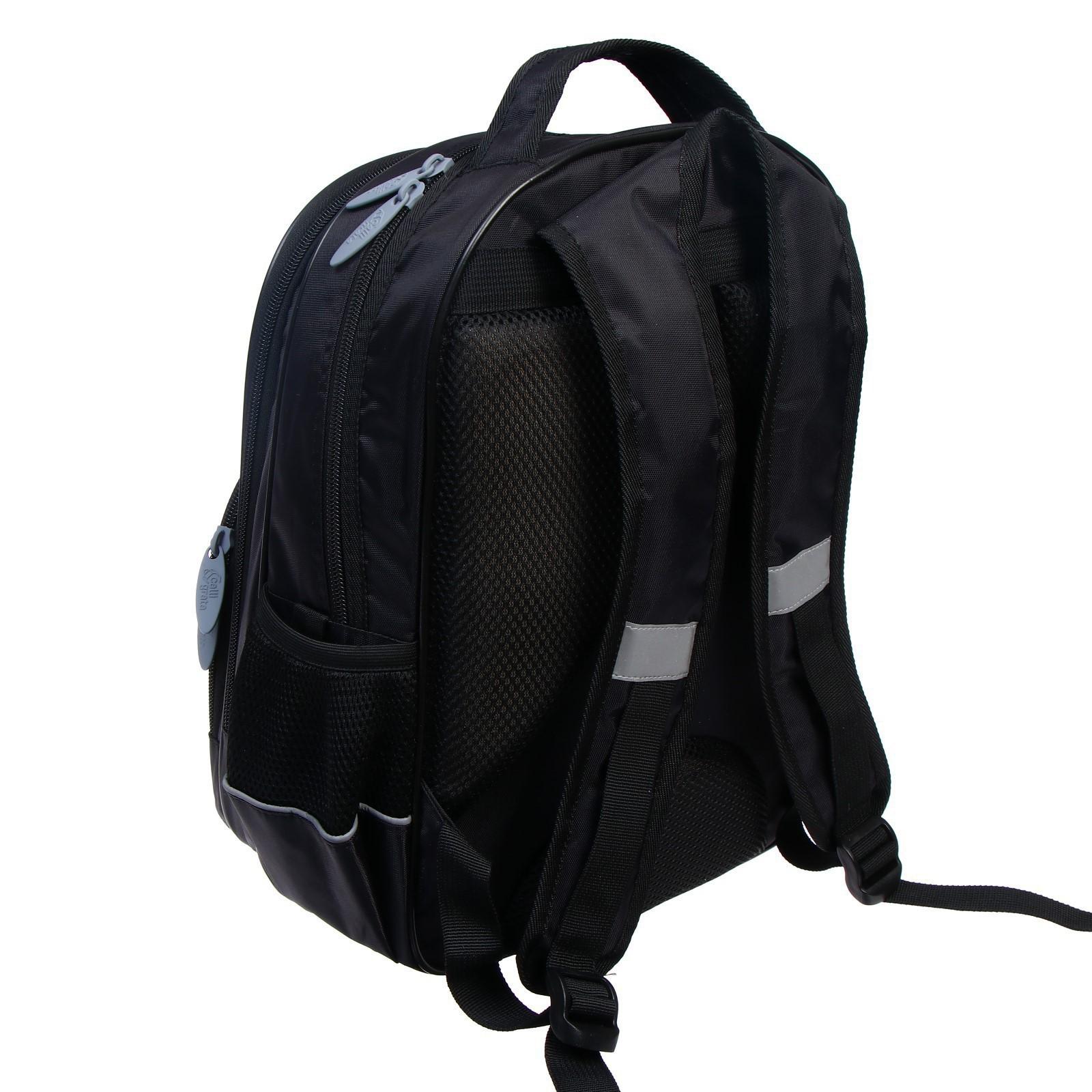 Облегчённый ученический ранец для детей младшего школьного возраста. Выполнен из прочного непромокаемого материала с покрытием ПВХ, внутренняя поверхность продублирована плотной подкладочной тканью, внутренние швы окантованы. Вместительный основной отдел, один малый отдел, два кармана на передней стенке, а также боковые карманы помогают удобно разместить ученические принадлежности. Цельноформованная спинка изготовлена из легких «дышащих» материалов, мягкие вкладыши образуют каналы для циркуляции воздуха. Анатомический рельеф спинки и регулируемые плечевые лямки «маечка» обеспечивают комфортную посадку ранца на спине ребенка, возможна комплектация нагрудной стяжкой. Фурнитура лёгкая пластиковая. На передней поверхности, боковых карманах и плечевых лямках имеются светоотражающие элементы, которые обеспечат лучшую видимость ребенка на улице и дороге в непогоду и в тёмное время суток.