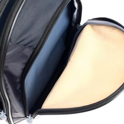 Цельноформованная спинка изготовлена из легких «дышащих» материалов, мягкие вкладыши образуют каналы для циркуляции воздуха. Анатомический рельеф спинки и регулируемые плечевые лямки "маечка" обеспечивают комфортную посадку ранца на спине ребенка. Отлётное жёсткое дно основного отдела и плотная основа спинки делают изделие более прочным и защищают содержимое от механических повреждений. Фурнитура лёгкая пластиковая, возможна комплектация нагрудной стяжкой. Светоотражающие элементы на передней поверхности, боковых карманах и плечевых лямках обеспечат лучшую видимость ребенка на улице и дороге в непогоду, в тёмное время суток.