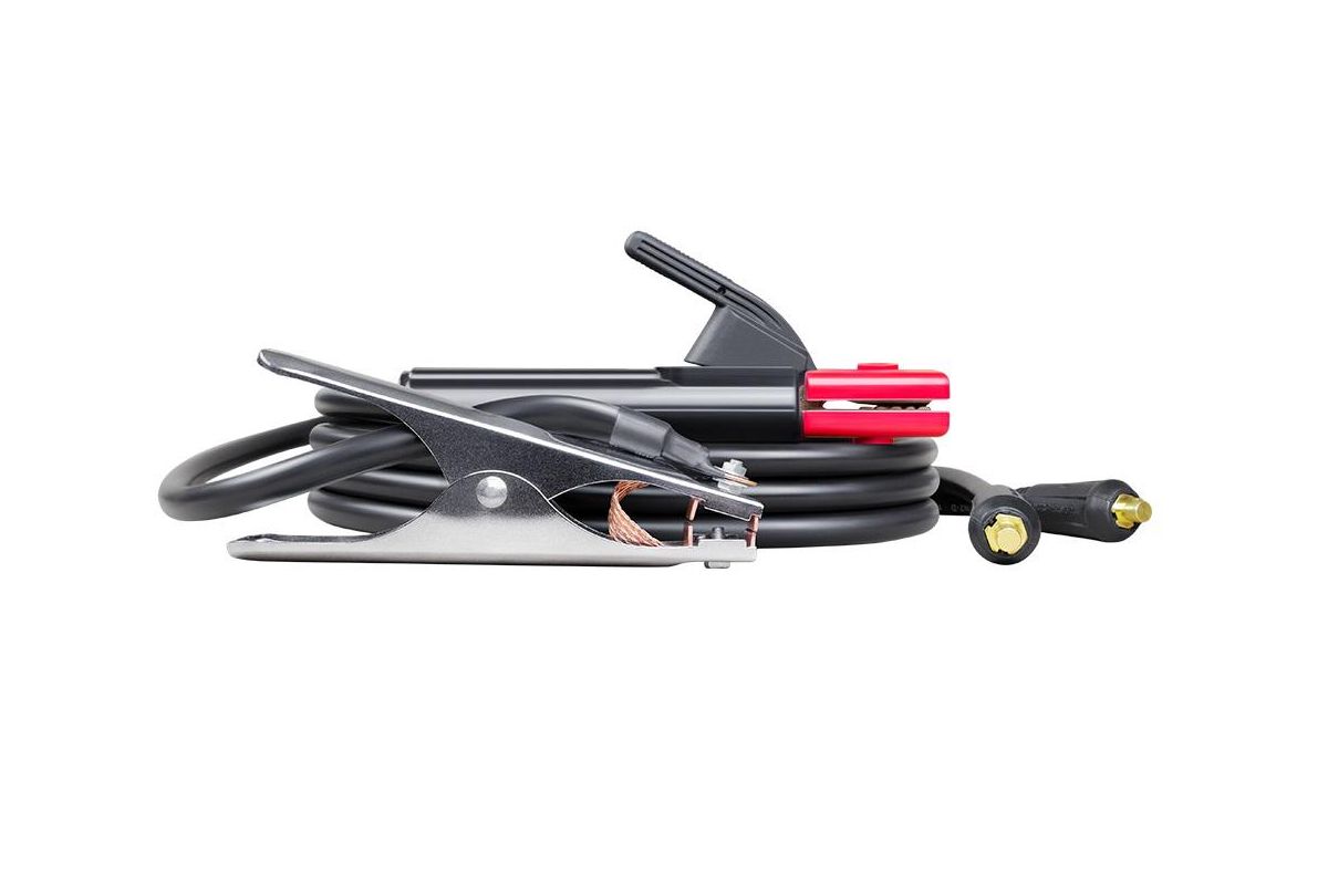 В комплект входят кабель с электрододержателем и кабель с клеммой для подключения к массе, до 200А.