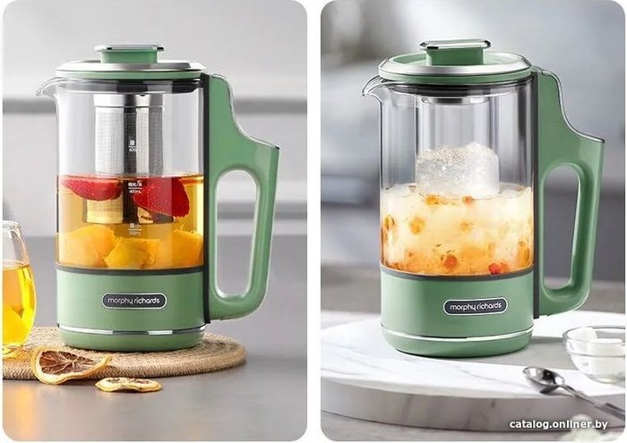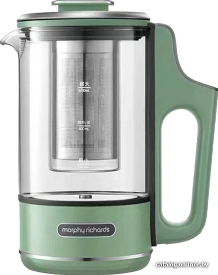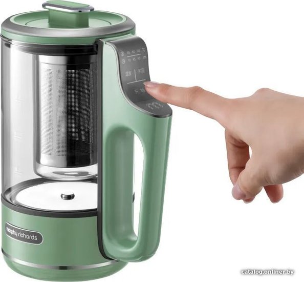 Богатый вкус листового чая, раскрытый в соответствии со всеми тонкостями чайной церемонии.Полезный лимонад или компот, охлажденный кубиками льда, прежде чем переливать в посуду.Небольшие порции еды для перекуса в походных условиях.Порция молочной каши из чайника – полезный завтрак вдали от дома.Офисная кулинария, которая не мешает коллегам – без шума и запахов.Бокал глинтвейна или пунша с идеальными пропорциями, как на изысканной вечеринке.Помимо разнообразных способов обработки ингредиентов, можно настраивать каждый день и напиток по своему усмотрению. Для этого предусмотрены: 3 режима нагрева чайника – 45°C, 80°C, 100°C и 3 варианта длительности поддержания температуры - 15 мин, 45 мин, 90 мин. Не все варианты температуры и времени комбинируются между собой – так, чайник откажется кипеть 90 мин при температуре 100°C. Подробнее подскажет само умное устройство.Интегрированный дизайн с сенсорным интерфейсом, встроенным в ручку чайника – чтобы отдавать команды одним прикосновением. Компактный корпус объемом 600 мл создан быть всегда под рукой. Его легко снять с подставки и захватить с собой, чтобы наслаждаться приготовленным напитком на важной встрече, во время прогулки с детьми или собакой, в перерывах между работой в саду. Это настоящий эксперт в области приготовления и раскрытия вкуса чайного листа.Ради надежности и качества фито чайника, который прослужит вам долгие годы, как фирменные долгожители техники Morphy Richards, отобраны самые безопасные и износоустойчивые материалы:Термоустойчивое кремниевое стекло графина и внутренней колбы – не боится нагревания и охлаждения, легко моется, не впитывает запахи.Фильтр и заварник из нержавеющей стали SUS304 – не содержат тяжелых металлов.Утолщенное стальное дно чайника – быстро нагревается, защищает от накипи и нагара.2 сменные крышки – для моментального тюнинга и выполнения различных операций с содержимым колбы и графина.Богатый вкус листового чая, раскрытый в соответствии со всеми тонкостями чайной церемонии.Полезный лимонад или компот, охлажденный кубиками льда, прежде чем переливать в посуду.Небольшие порции еды для перекуса в походных условиях.Порция молочной каши из чайника – полезный завтрак вдали от дома.Офисная кулинария, которая не мешает коллегам – без шума и запахов.Бокал глинтвейна или пунша с идеальными пропорциями, как на изысканной вечеринке.Помимо разнообразных способов обработки ингредиентов, можно настраивать каждый день и напиток по своему усмотрению. Для этого предусмотрены: 3 режима нагрева чайника – 45°C, 80°C, 100°C и 3 варианта длительности поддержания температуры - 15 мин, 45 мин, 90 мин. Не все варианты температуры и времени комбинируются между собой – так, чайник откажется кипеть 90 мин при температуре 100°C. Подробнее подскажет само умное устройство.Интегрированный дизайн с сенсорным интерфейсом, встроенным в ручку чайника – чтобы отдавать команды одним прикосновением. Компактный корпус объемом 600 мл создан быть всегда под рукой. Его легко снять с подставки и захватить с собой, чтобы наслаждаться приготовленным напитком на важной встрече, во время прогулки с детьми или собакой, в перерывах между работой в саду. Это настоящий эксперт в области приготовления и раскрытия вкуса чайного листа.Ради надежности и качества фито чайника, который прослужит вам долгие год