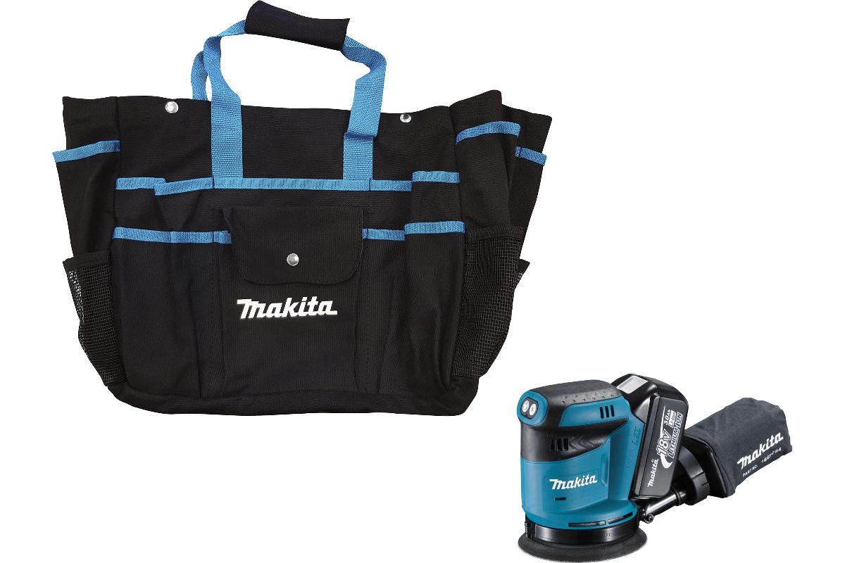 В состав набора входят: Машинка шлифовальная орбитальная (эксцентриковая) MAKITA DBO180RFE 2х3Ач 125мм 7000\9500\11000об\м, Сумка MAKITA PGH-170100