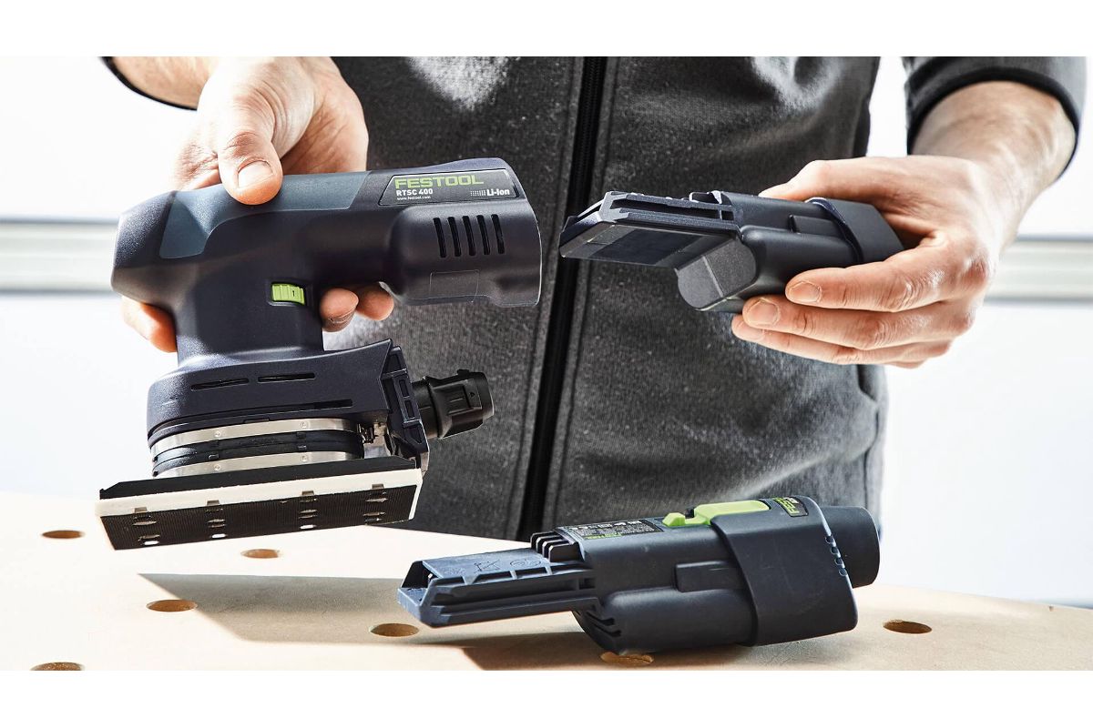 Уникальную мобильность и свободу передвижения при выполнении работ обеспечивают новые аккумуляторные компактные шлифовальные машинки RTSC 400, DTSC 400, ETSC 125. Аккумулятор Ergo 18 В 3,1 А/ч с технологией Bluetooth® гарантирует мощность как у сетевого инструмента. Он имеет очень компактную конструкцию со сбалансированным распределением веса и превосходную эргономичность при массе всего 1,4 кг. Система автоматического пылеудаления в комбинации с мешком-пылесборником из долговечного нетканого материала обеспечивает комфортное использование машинки — даже для работы даже над головой, на вертикальных поверхностях или в труднодоступных местах. Технология Bluetooth® позволяет автоматически запускать пылеудаляющий аппарат Festool с модулем Bluetooth® при включении шлифмашинки. Для непрерывной работы аккумулятор можно заменить на сетевой адаптер plug it — оптимальный вариант для стационарного использования и в комбинации с пылеудаляющим аппаратом Festool.