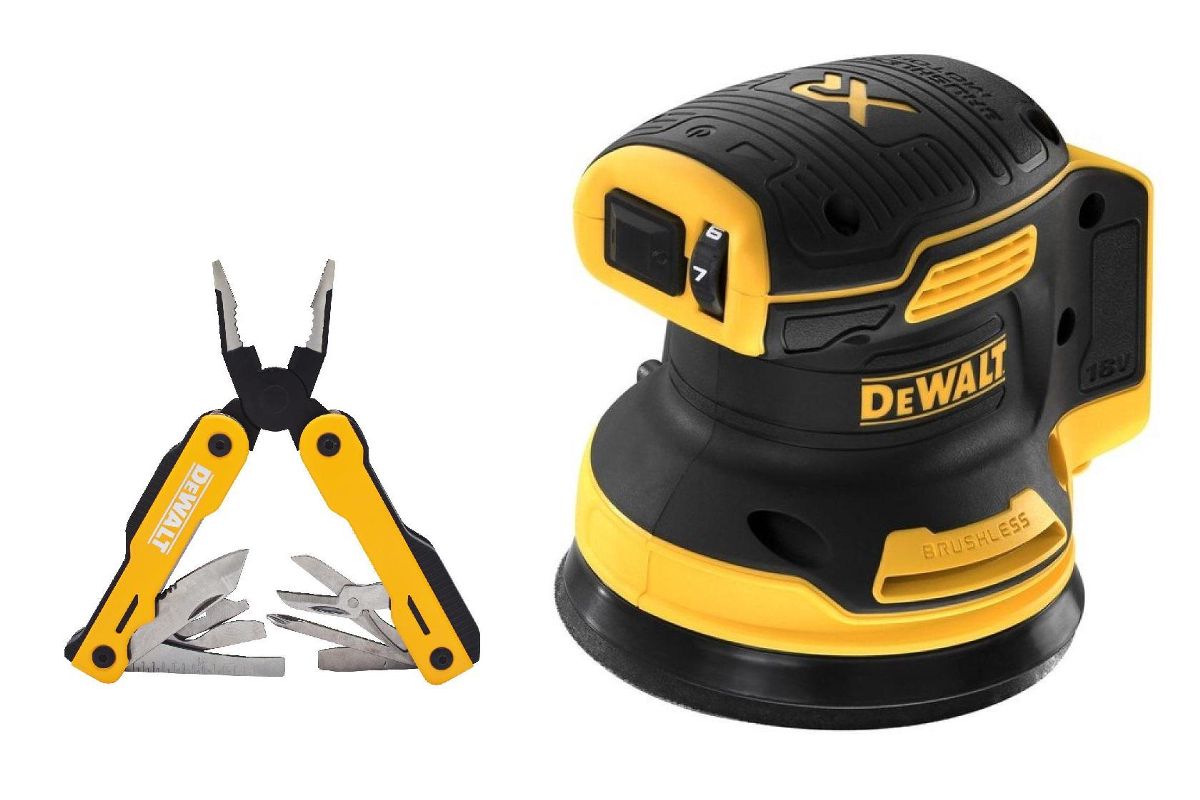 В состав набора входят: Эксцентриковая орбитальная шлифмашина DEWALT DCW210N, Мультитул DEWALT DWHT71843
