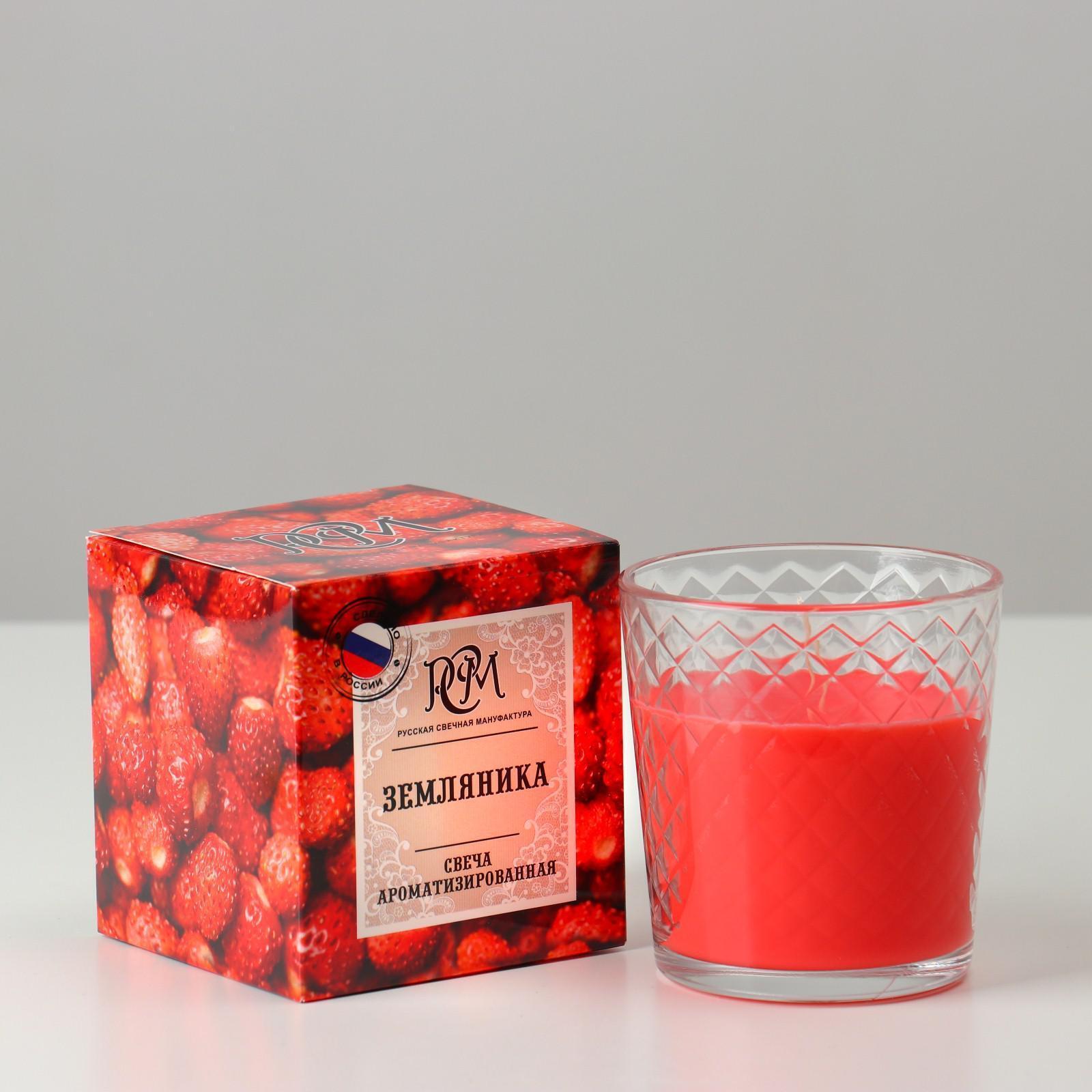 Свеча ароматическая в стакане "Земляника", подарочная упаковка, 8х8,5 см, 30 ч