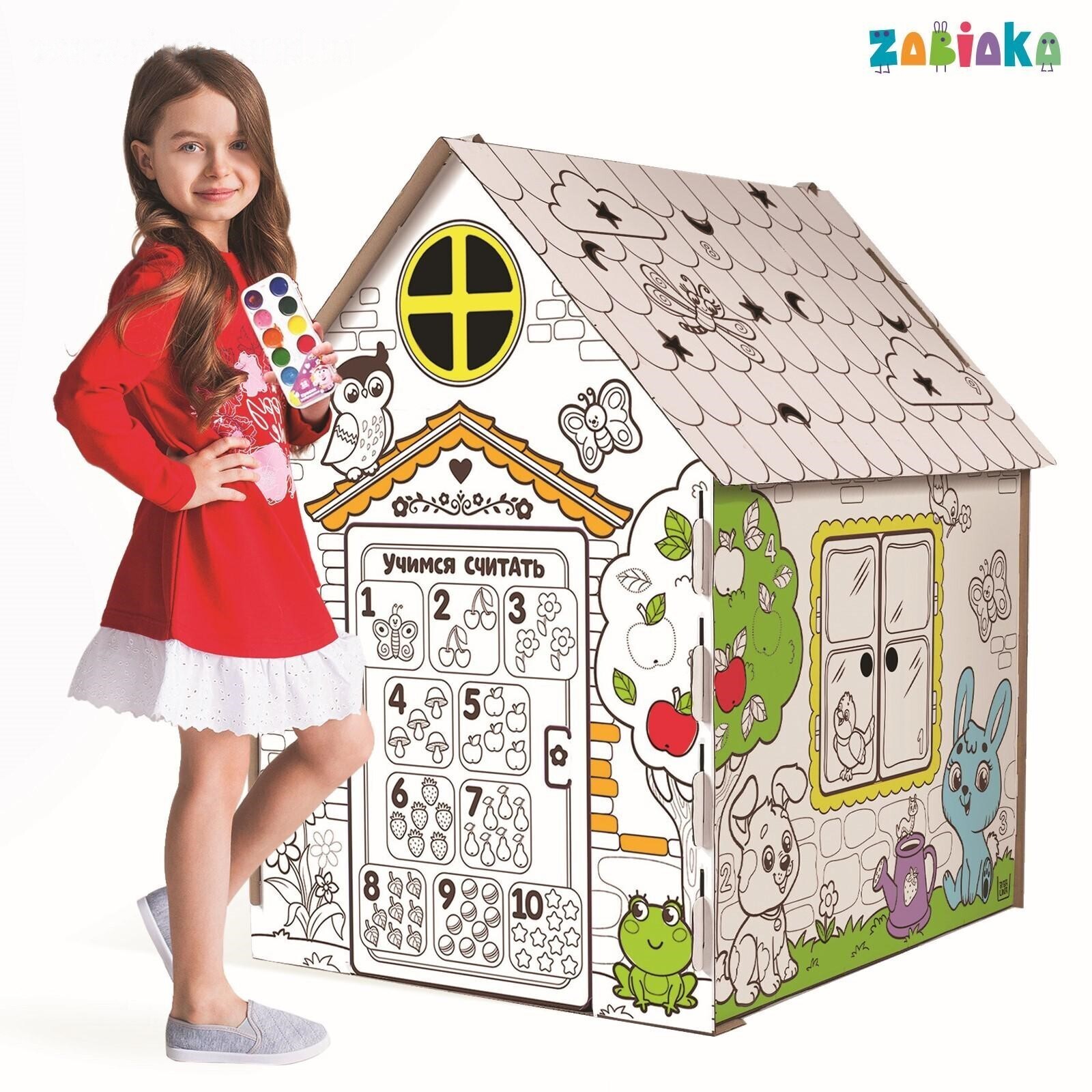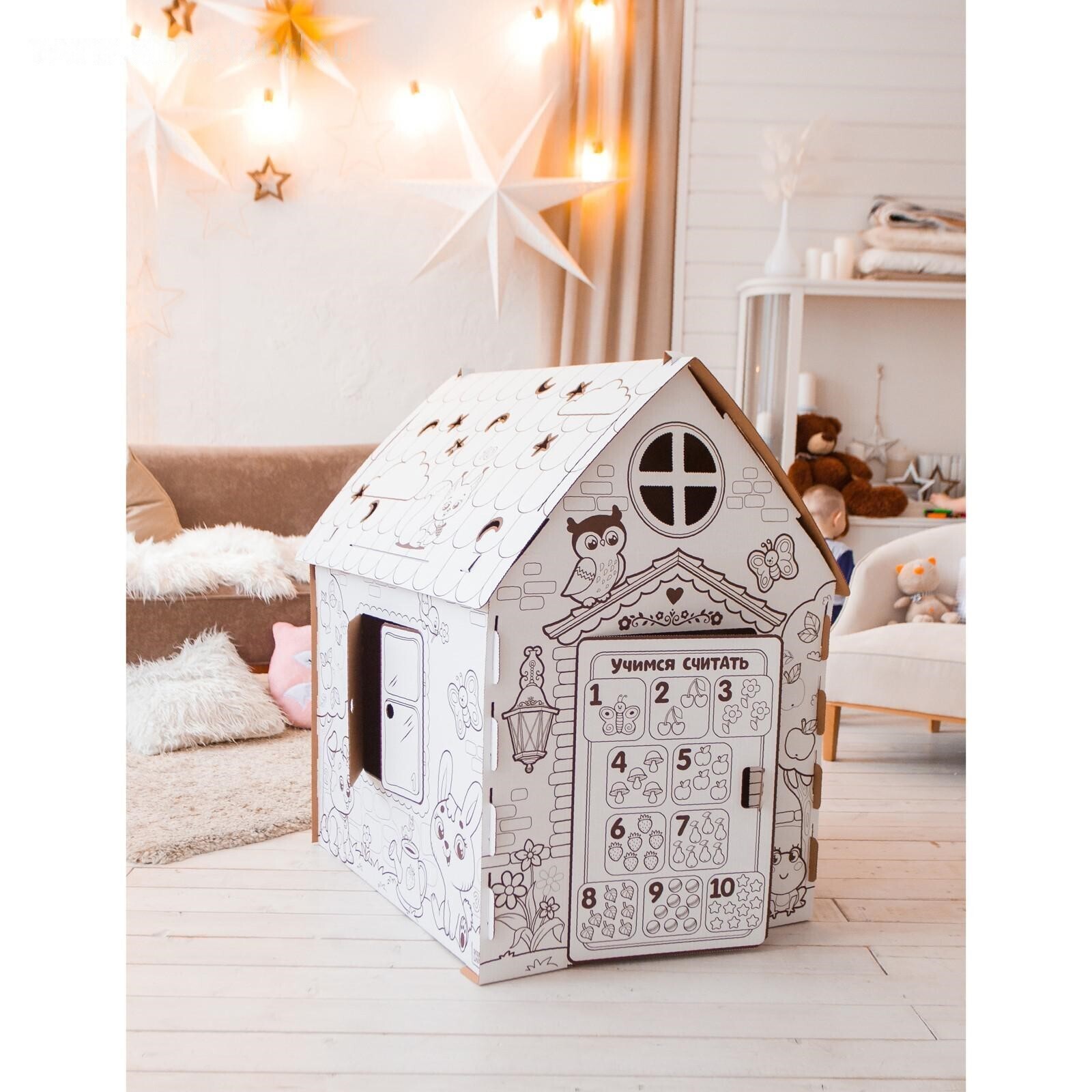 Домик из картона станет для ребёнка любимым местом для игр. Внутри малыш устроит себе уютный уголок, а снаружи раскрасит стены по собственному дизайну.
