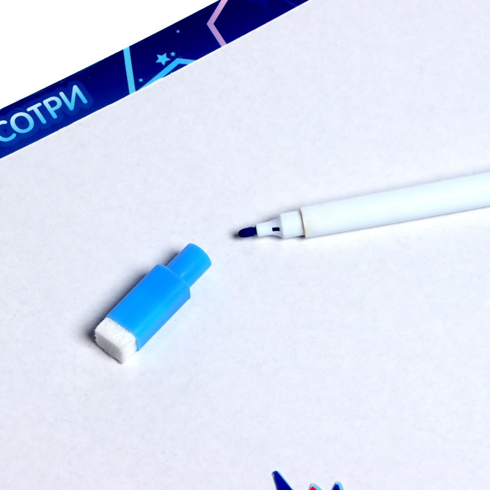 Если со стороной «Напиши и сотри» для рисования обычным маркером всё ясно, то на стороне для рисования светом ребёнок создаст яркие рисунки в необычной технике.