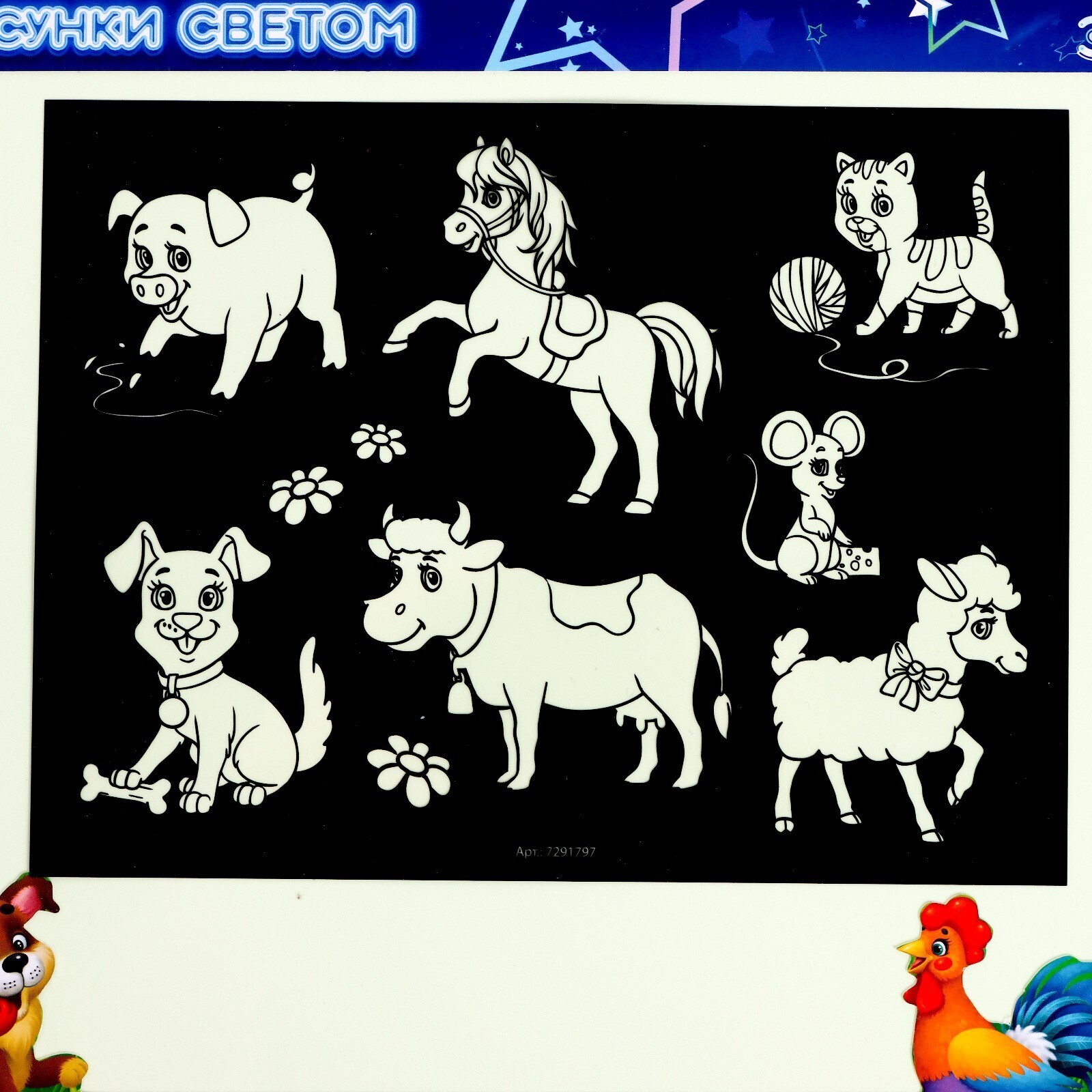 Набор для рисования светом + доска напиши и сотри, ферма