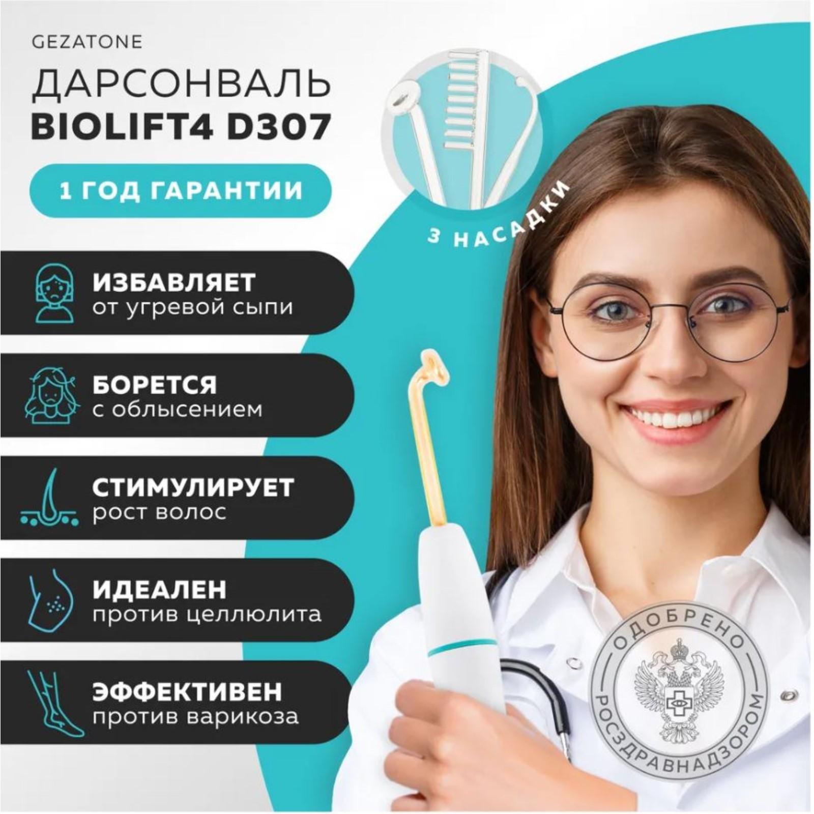 Дарсонваль Gezatone Biolift4 D307, импульсный, 3 насадки