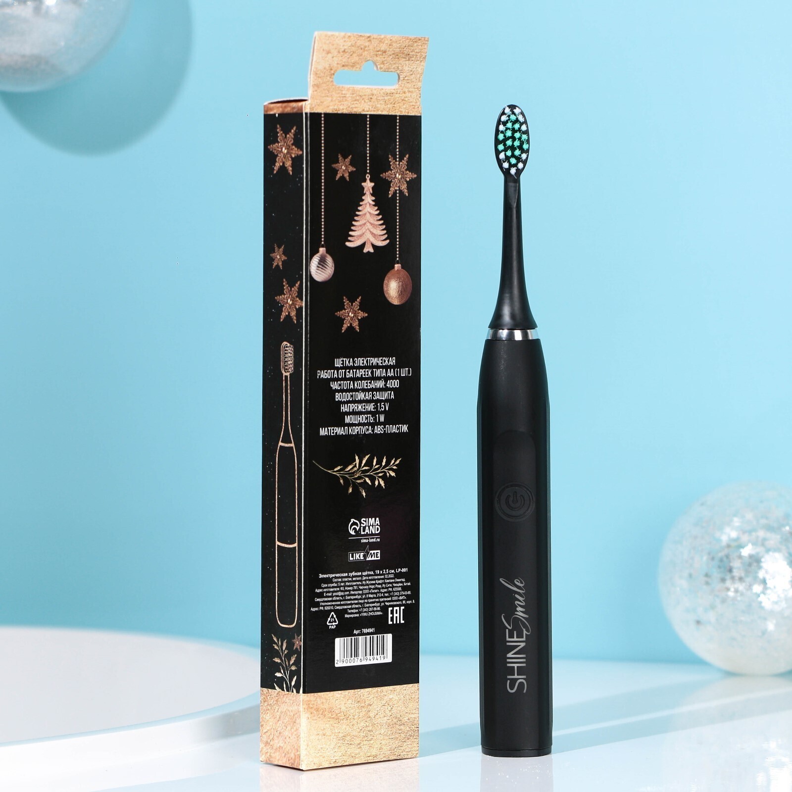 В комплекте идёт три насадки. Работает от одной алкалиновой батарейки (не идет в комплекте).