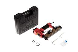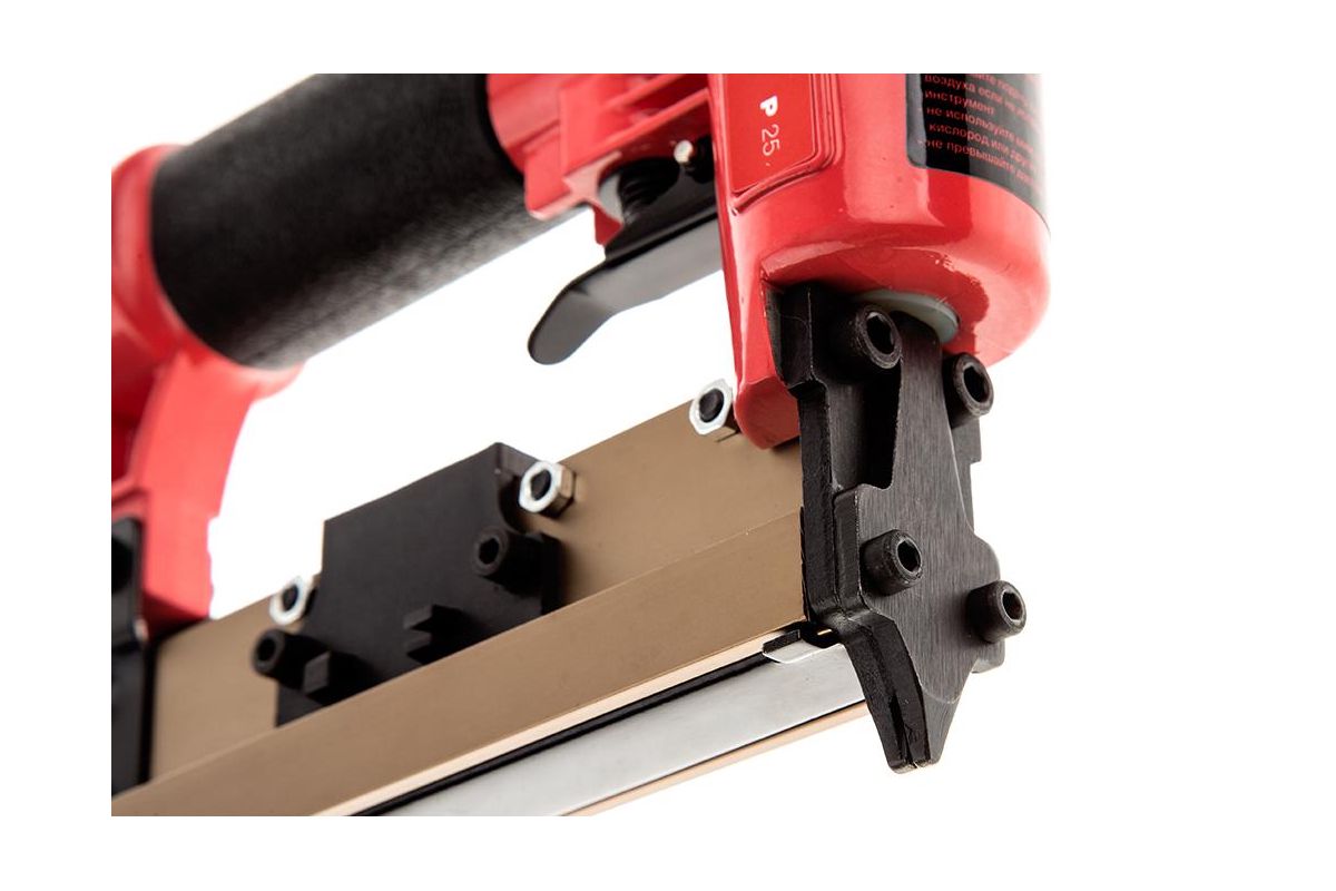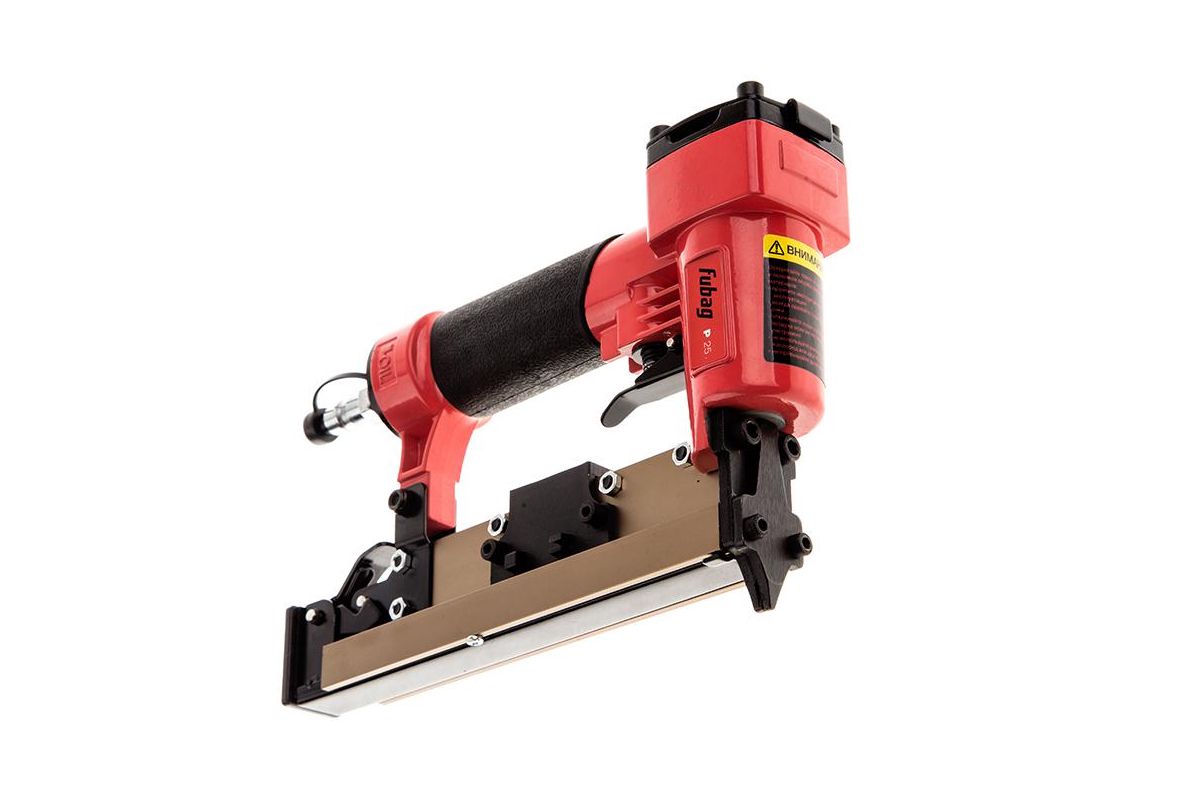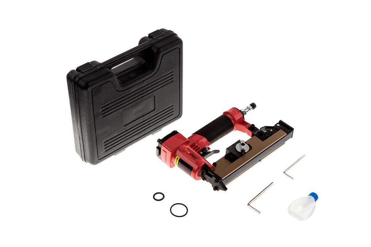 Шпилькозабивной пистолет помогает закрепить наличники, элементы декора и прочее. В качестве расходки используются шпильки. Работа на сжатом воздухе предусматривает увеличенный рабочий ресурс инструмента и возможность длительной работы без остановки. Вес инструмента составляет всего 1 кг, что делает работу менее утомительной.