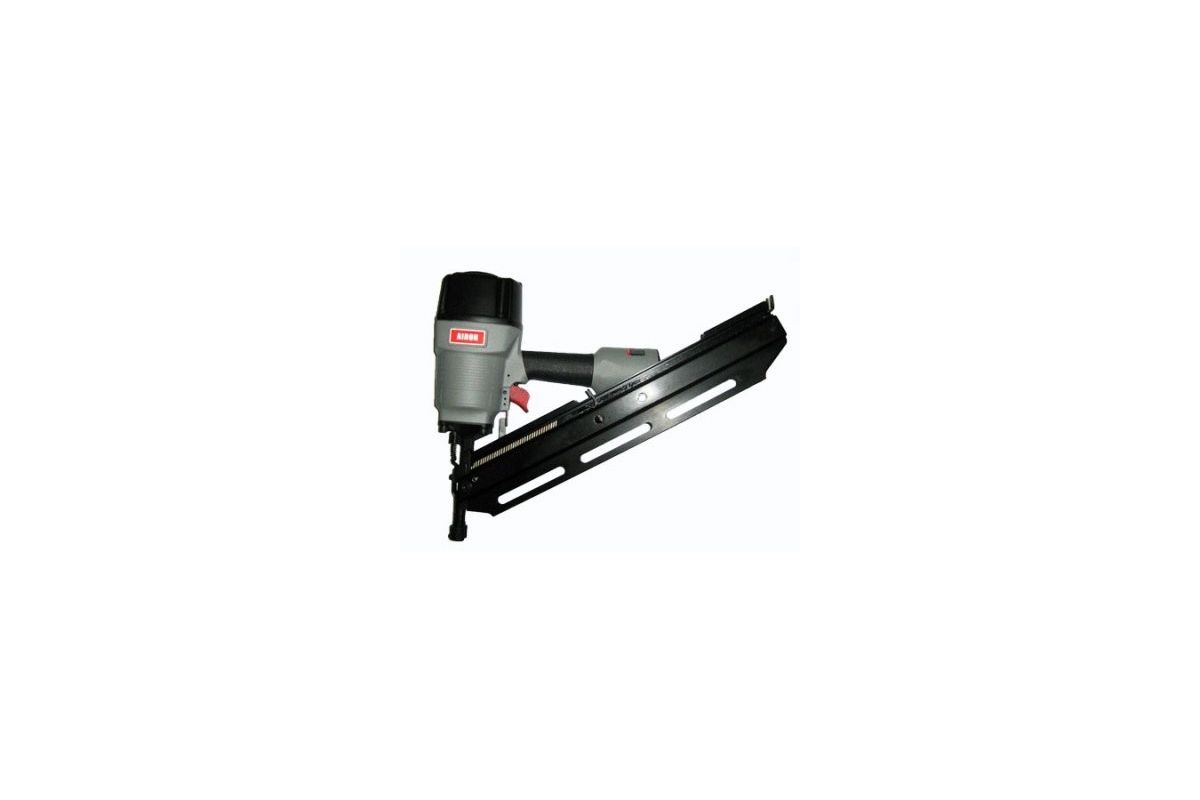 Пневматический гвоздезабивной инструмент для гвоздей на бумажной ленте с углом наклона 34° . Используемый крепеж - кассетный гвоздь. Применяется для строительных конструкций, полов, настилов. Для строительства деревянных домов и сооружений, изготовления заборов и других работ.