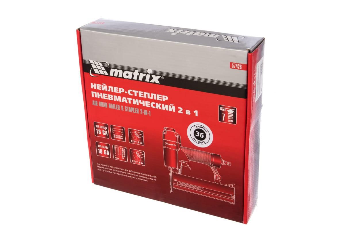 Нейлер MATRIX 57426 -степлер пневматический 2 в 1 гвозди 18ga длина 10-50мм скобы 18ga длина 13-40