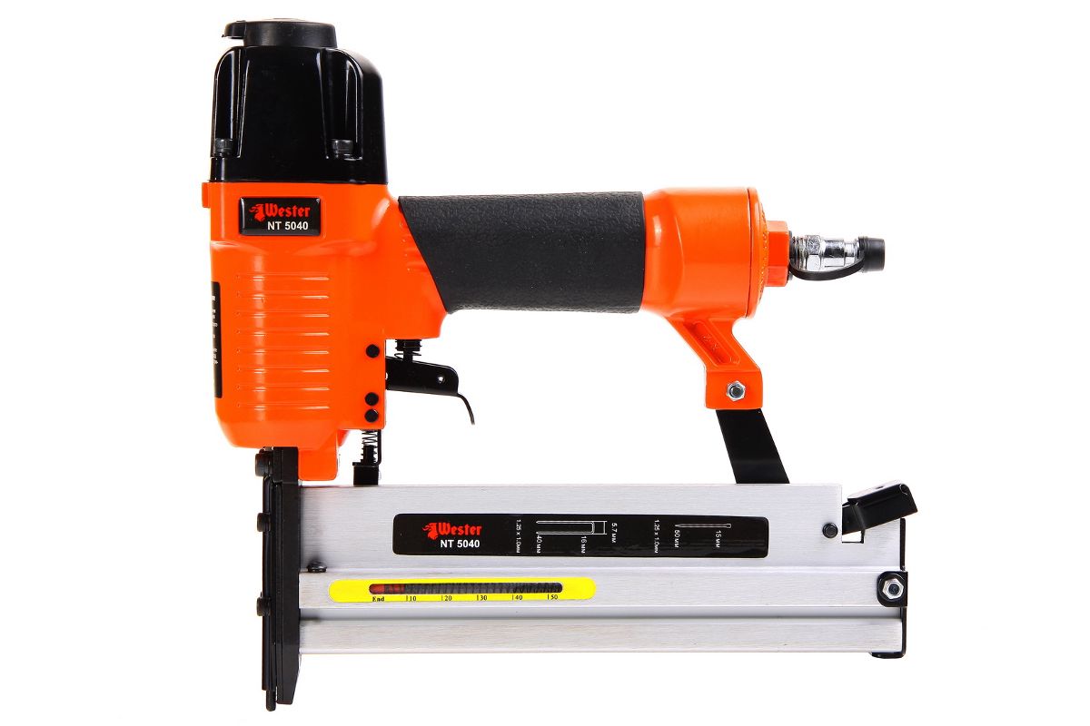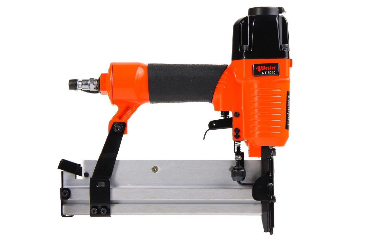 WESTER NT-5040 – пневматический степлер для монтажных и отделочных работ, работает с гвоздями и скобами всех ходовых размеров. С его помощью к деревянным поверхностям крепят ткани, пластик, ДВП и другие материалы.