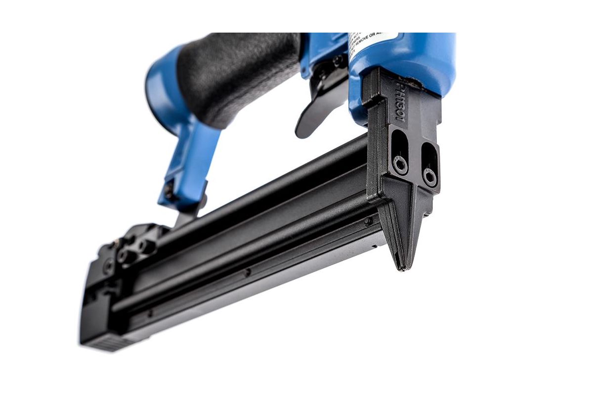 Инструмент профессионального класса. Он используется при отделке помещений, в строительных работах. Инструмент работает с финишными гвоздями, у которых практически отсутствуют шляпки, поэтому их почти не видно в материале. Работа на сжатом воздухе позволяет значительно увеличить рабочий ресурс инструмента. Малый вес снижает энергоемкость рабочего процесса.