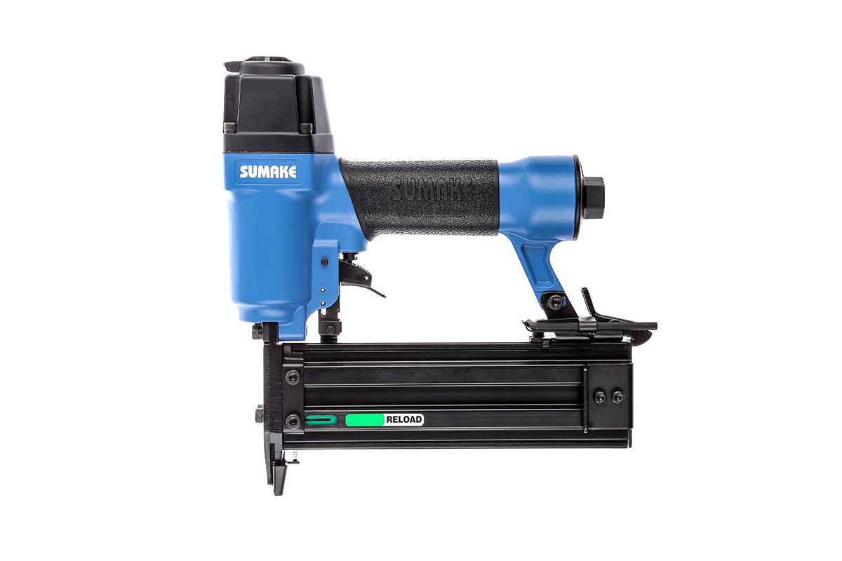 - В конструкции предусмотрен выключатель куркового типа для простоты управления работой гвоздезабивного пистолета Sumake F-18/50;