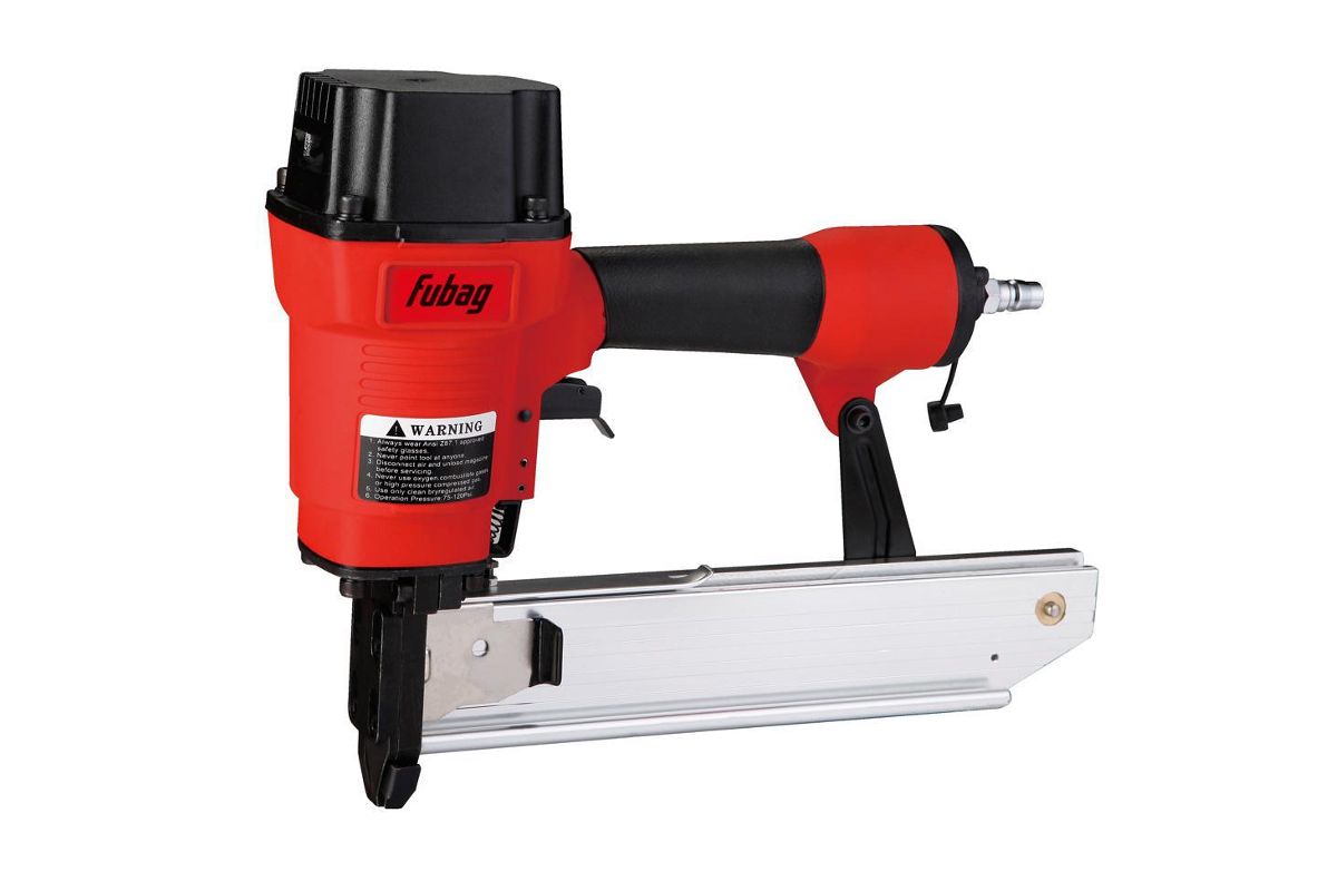 Скобозабивной пистолет Fubag S1051, работающий скобами с «узкой» спинкой. Эффективен для работ по отделке декоративных деталей внутренней части дома, где необходимо скрытое и надёжное крепление.