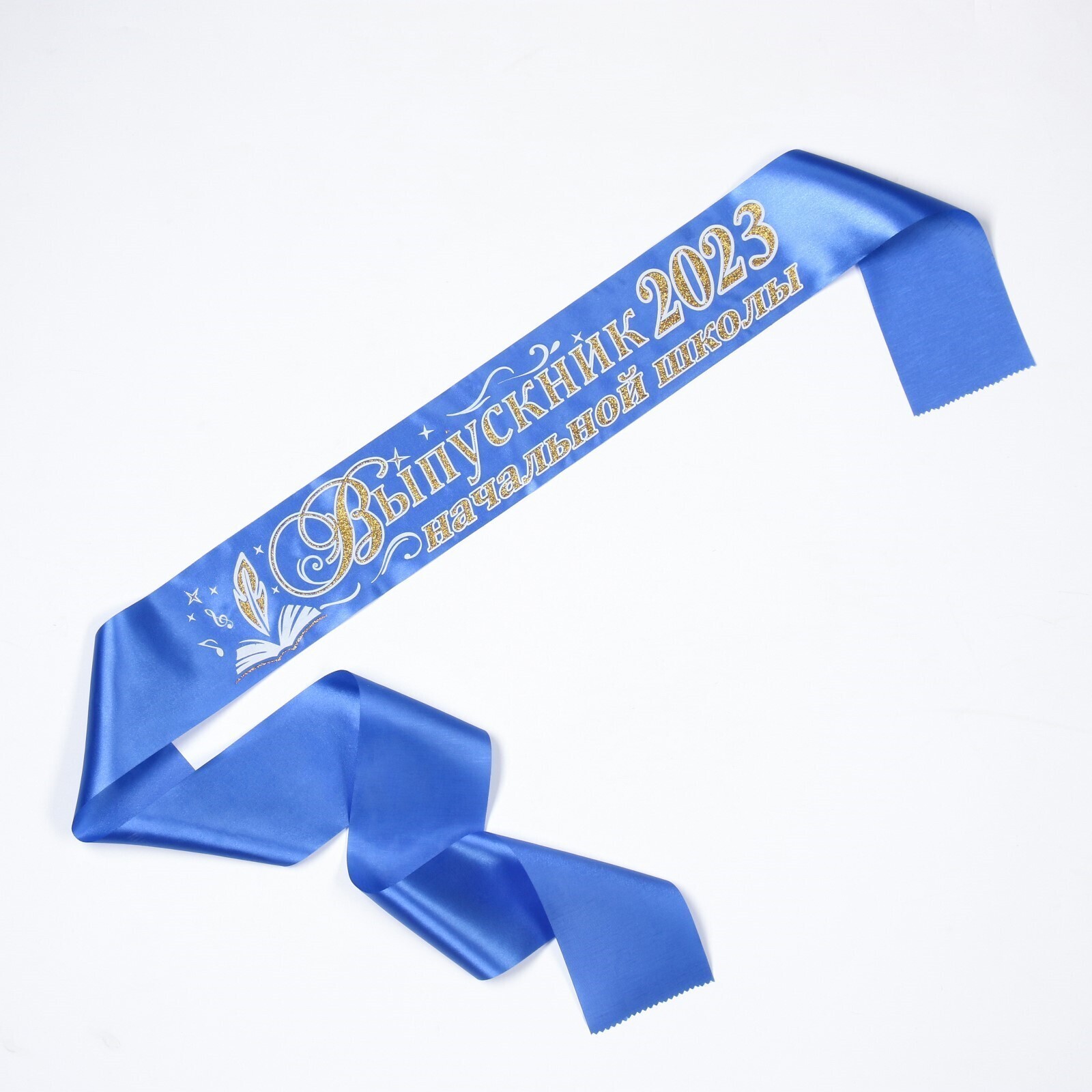 Лента "Выпускник начальной школы", атлас синий с годом 3D