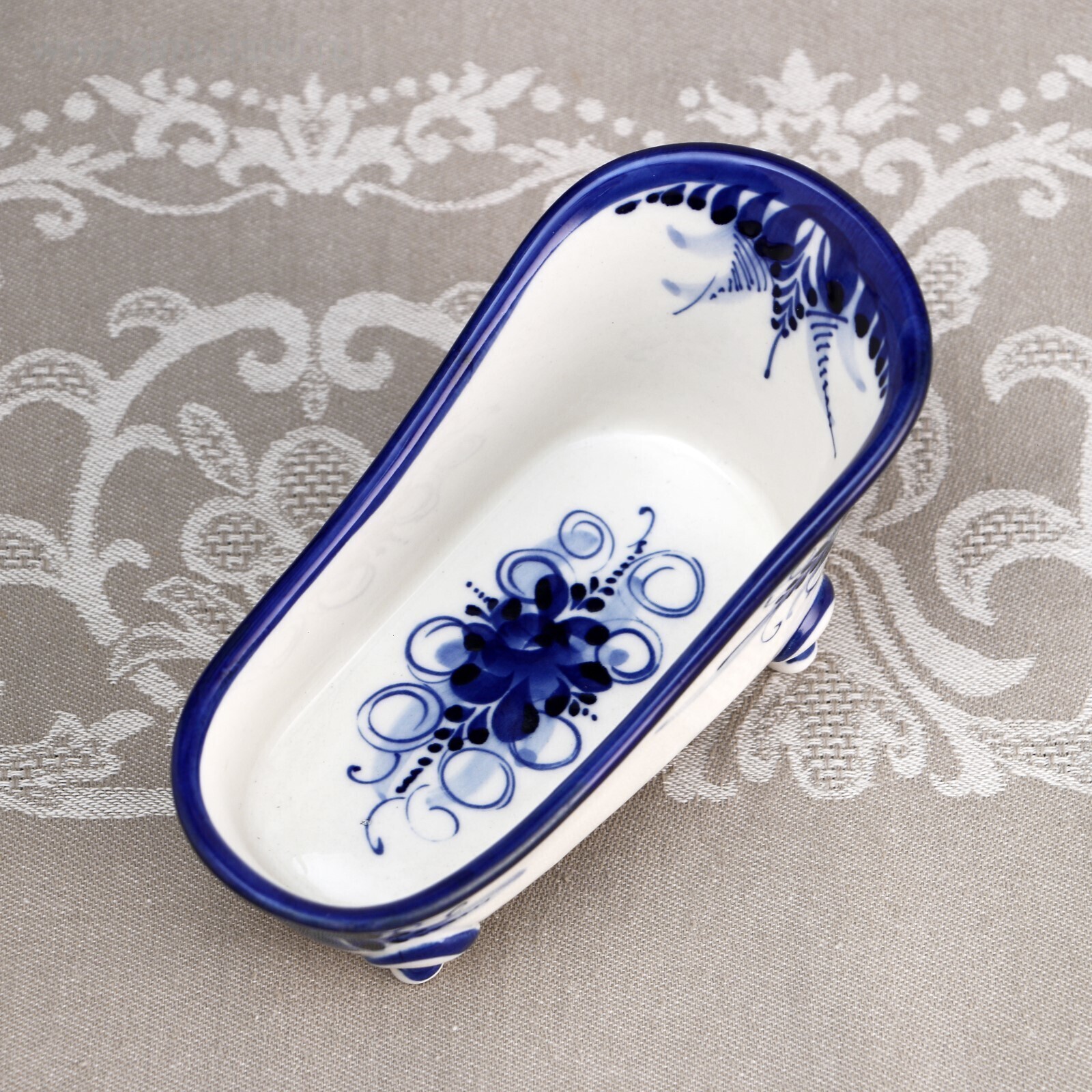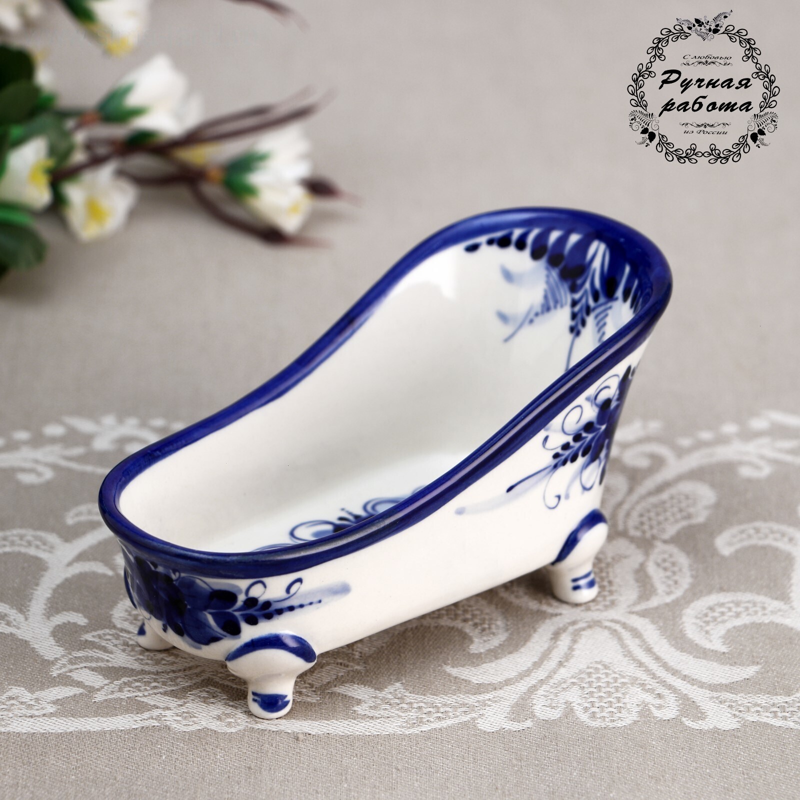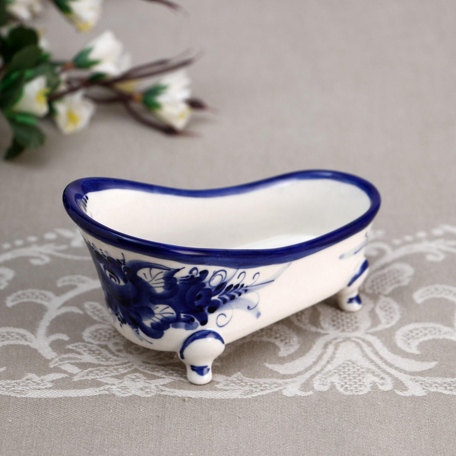 Подставка для губки "Ванночка", гжель, фарфор, 150 мл, 7х15 см