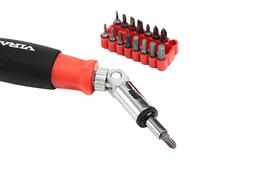 Отвертка реверсивная, с шарниром Flex-head (0-45-90 град), набор бит - 16 штук.