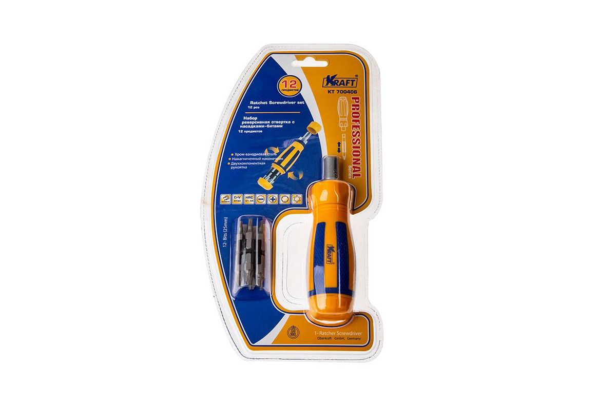 Отвертка реверсивная KRAFT КТ 700406 с насадками-битами 12пр.