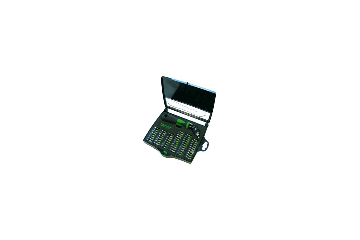 Отвертка HAUPA 104006 - это универсальная и практичная отвертка с храповым механизмом Flex («трещоткой»). Предусмотрено правое и левое направление вращения. Рабочий угол регулируется в диапазоне 180°. В набор входят 55 стальных насадок, 1 адаптер и пластиковый кейс для хранения. Вес брутто составляет 0,77 кг.