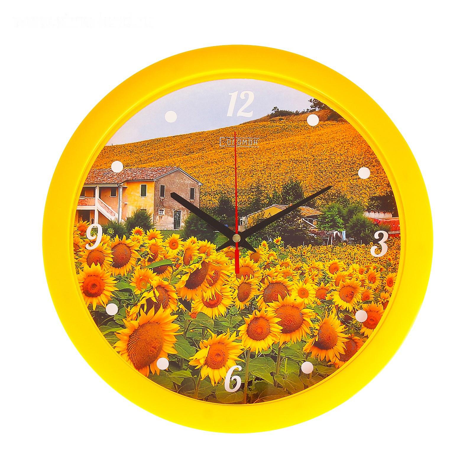 Часы настенные, серия: Цветы, "Подсолнечник", плавный ход, d=28 см