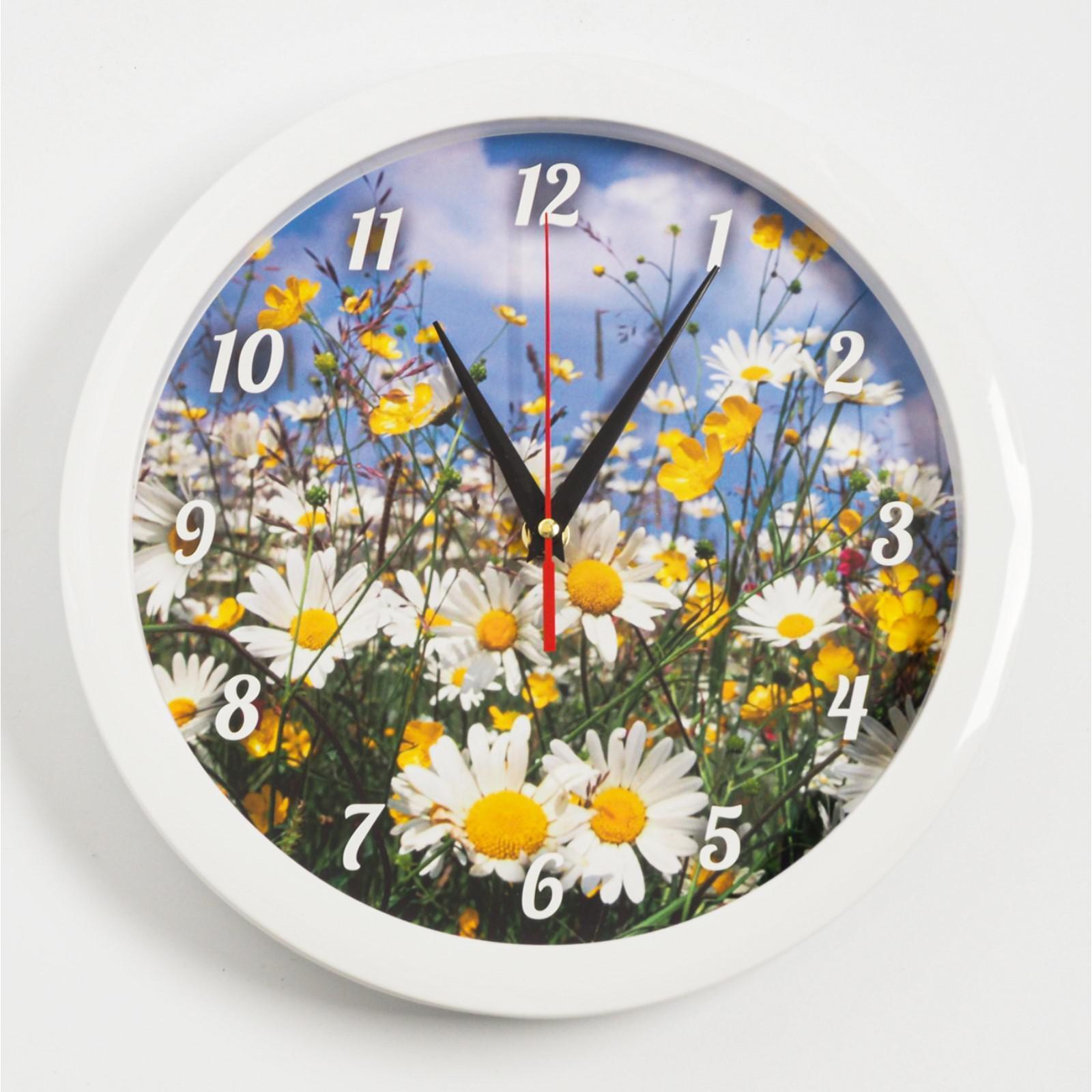 Часы настенные, серия: Природа, "Ромашки", плавный ход, d=28 см