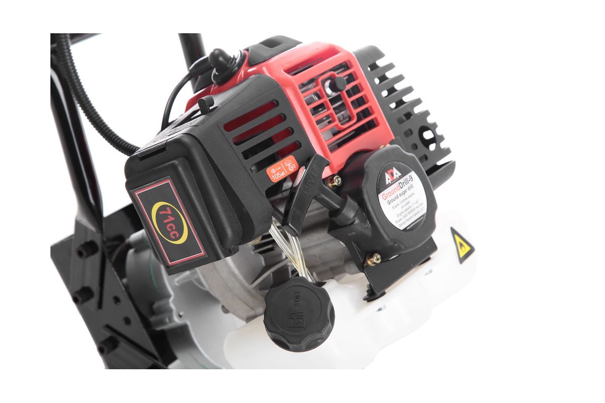 ADA GroundDrill-9 — профессиональный мотобур для бурения в почве отверстий диаметром до 30 см. Модель предназначена для 2-х операторов. Бензобур используется для выполнения садовых работ, установки столбов освещения, заборов. Устройство оснащено 2-тактным двигателем с воздушным охлаждением. Мощность — 3,26 л.с.