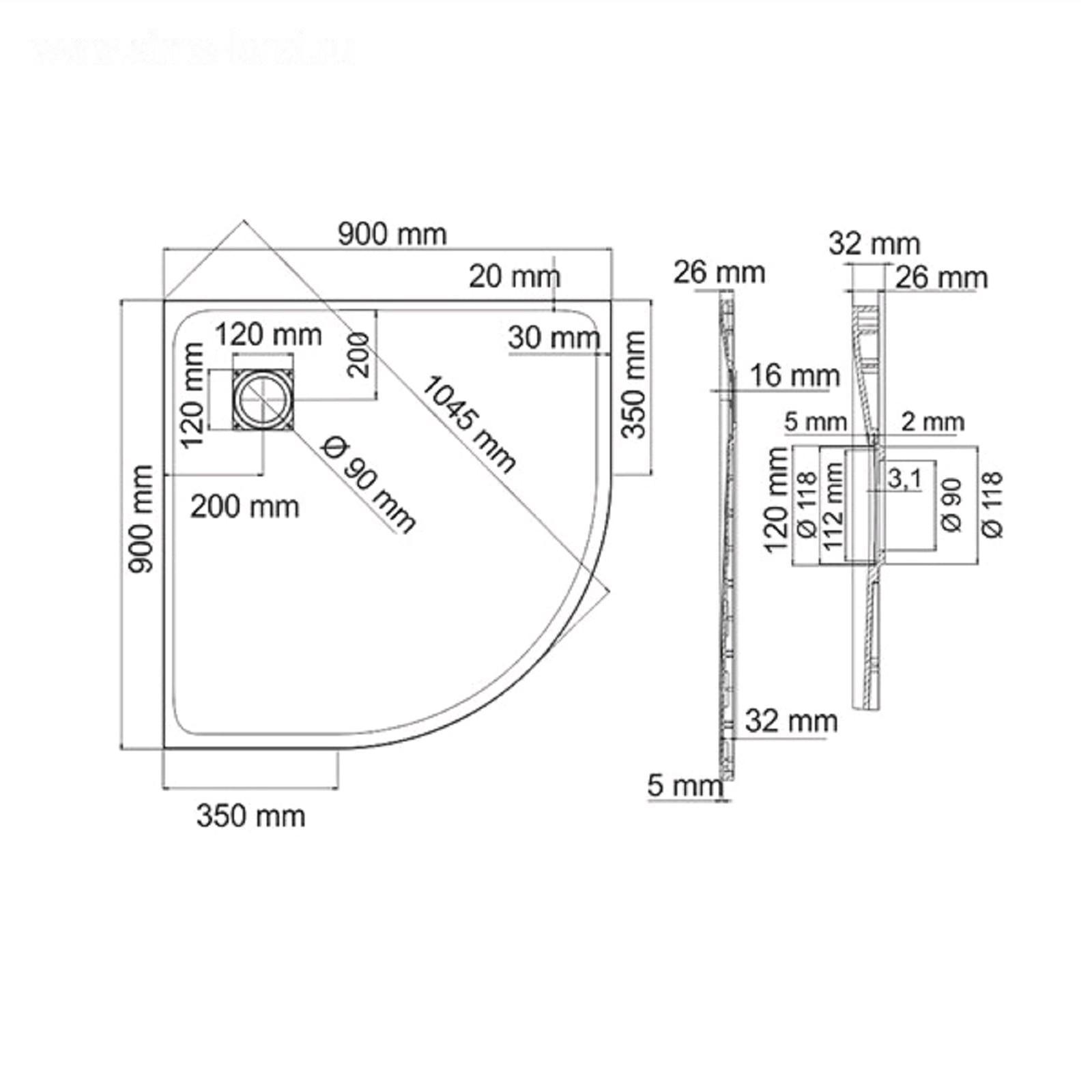 Душевой поддон WasserKRAFT Leine 35T01, 900 x 900 x 26 мм, полукруглый, белый