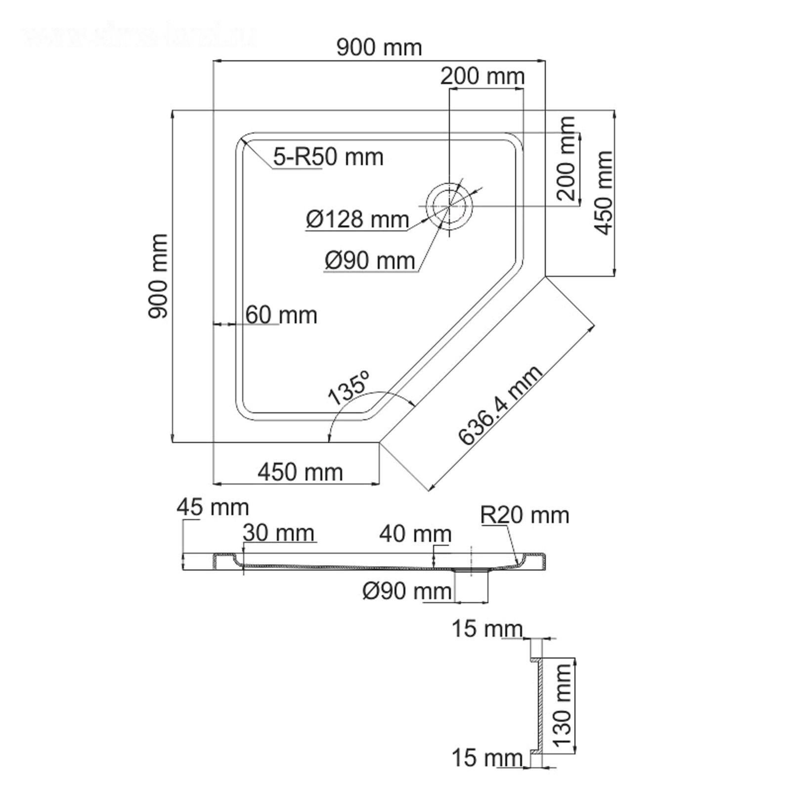 Душевой поддон WasserKRAFT Isen 26T11, 900 x 900 x 175 мм, угловой, белый
