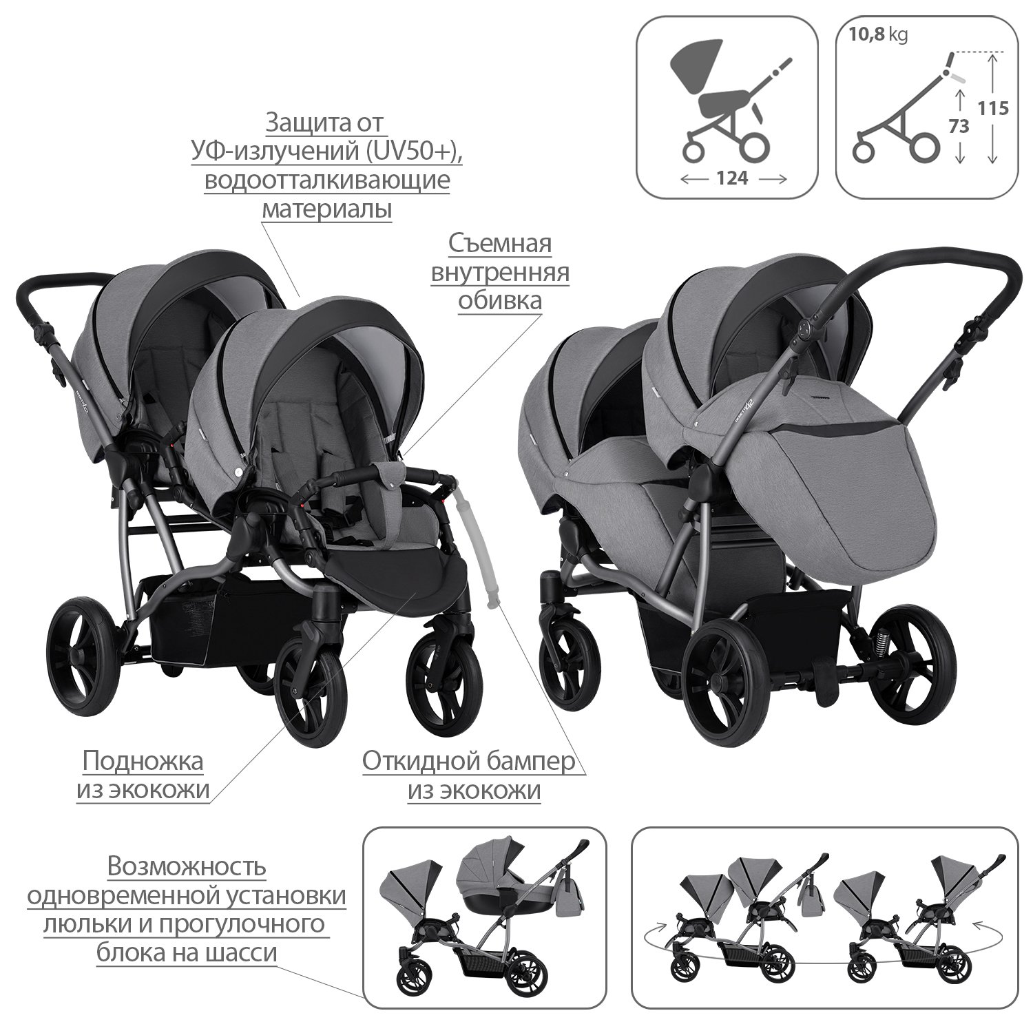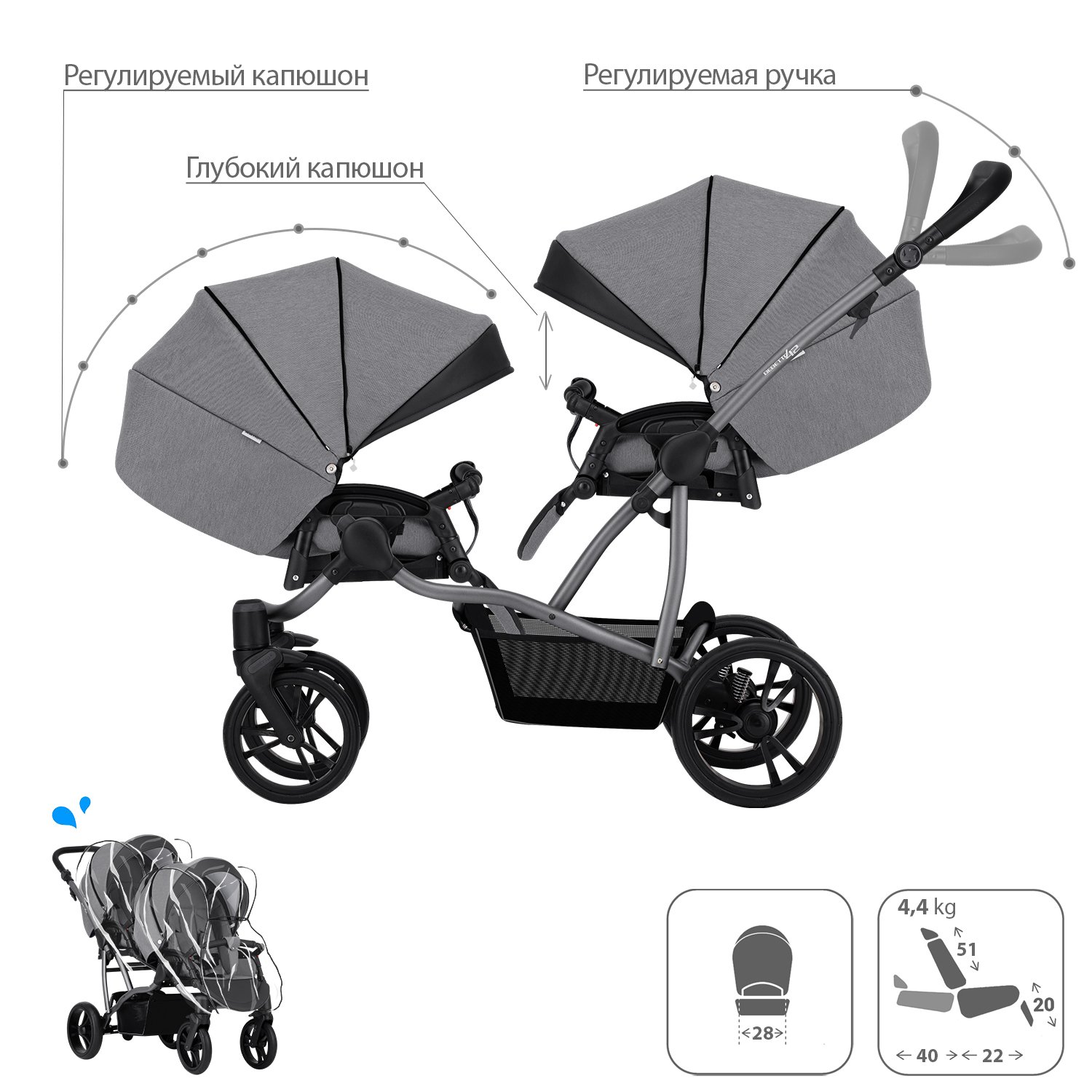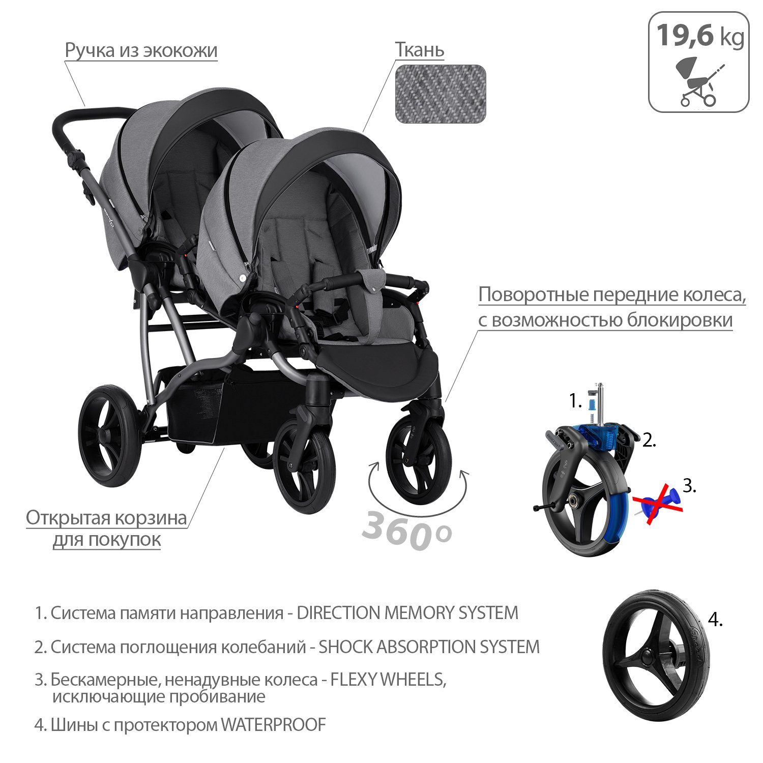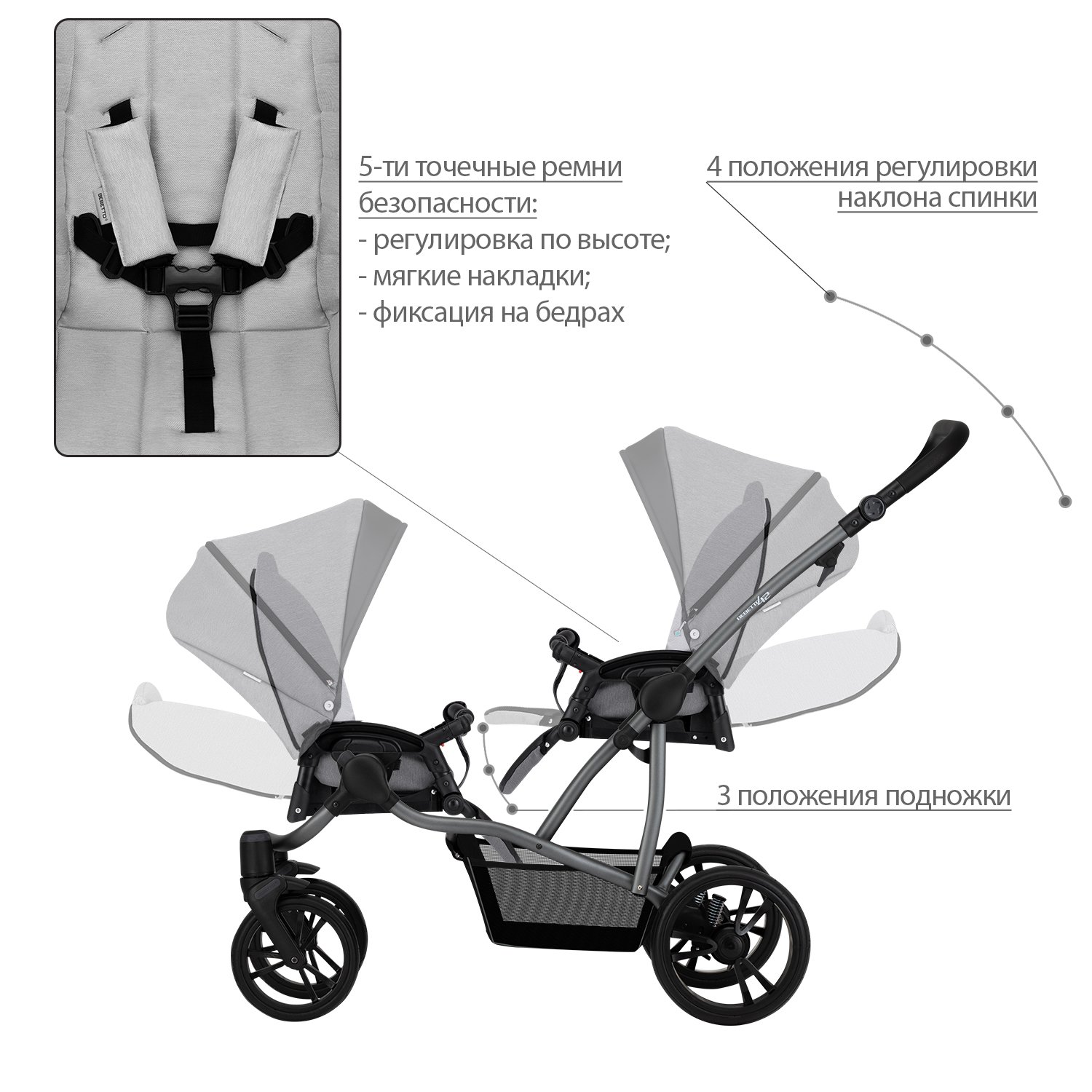 Коляска прогулочная для двойни Bebetto 42 Sport Comfort 04 шасси Графит 130504004