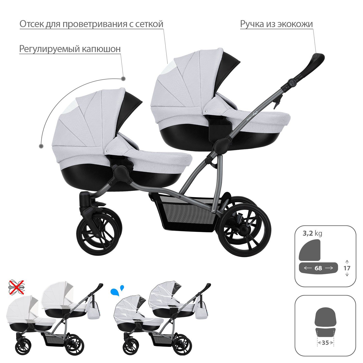 Коляска для двойни 2в1 Bebetto 42 Comfort 03 шасси Графит 130104003