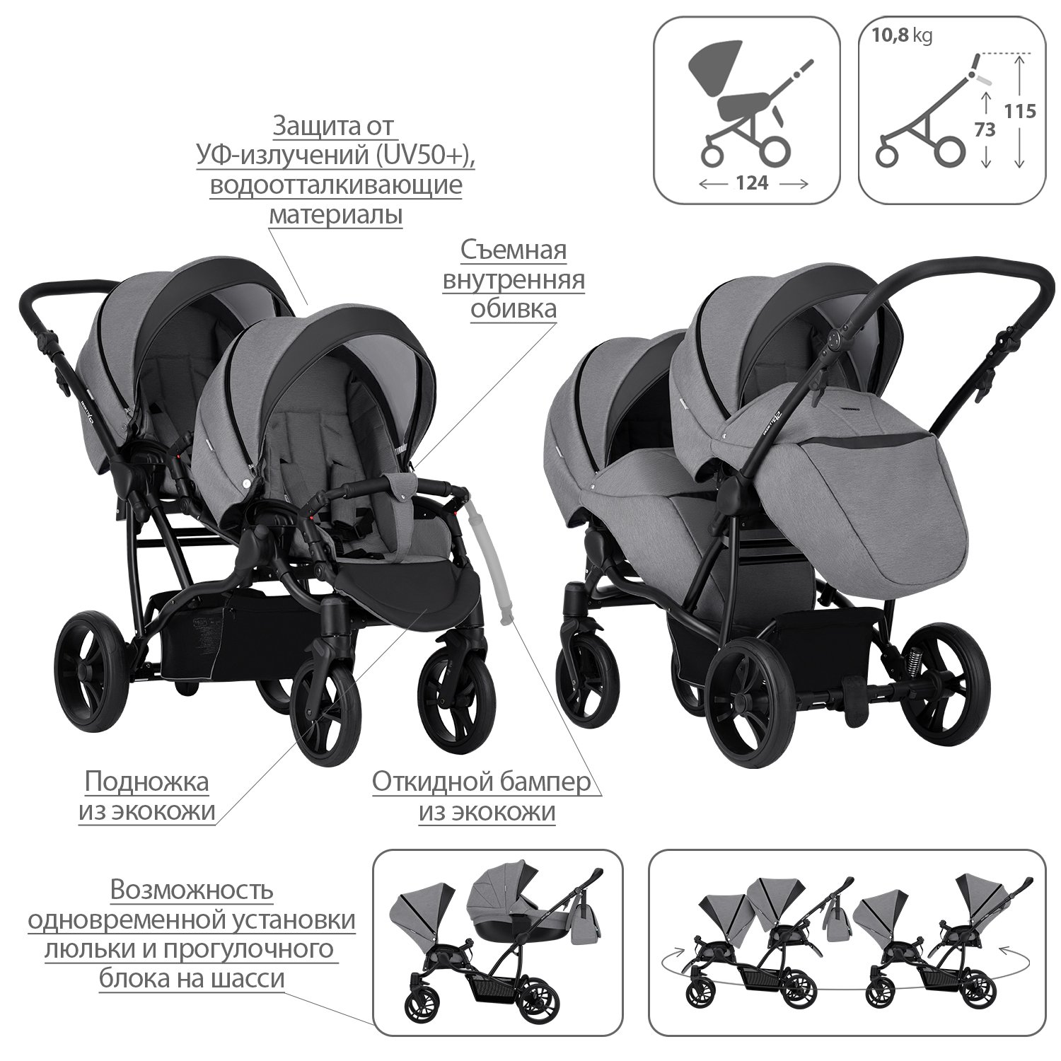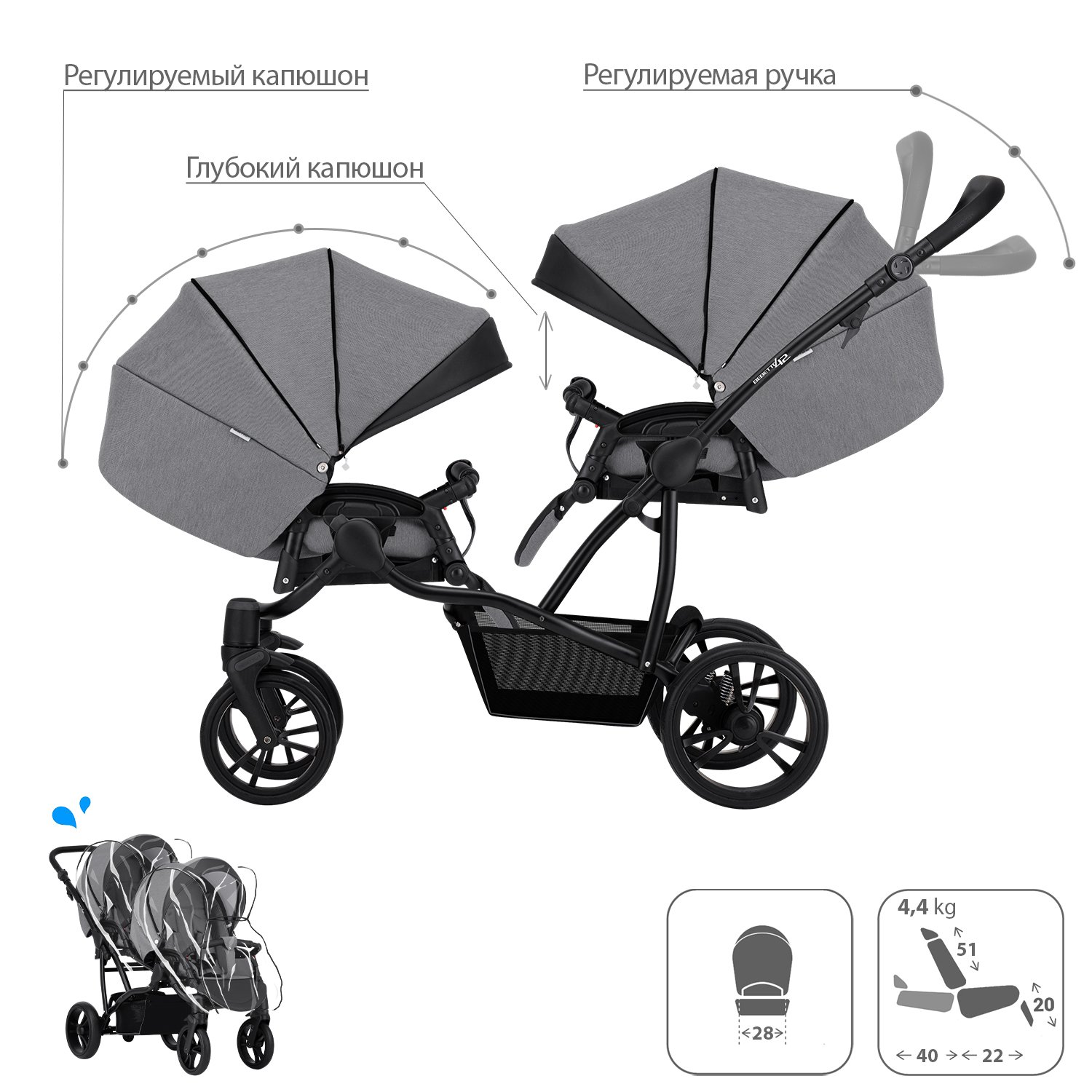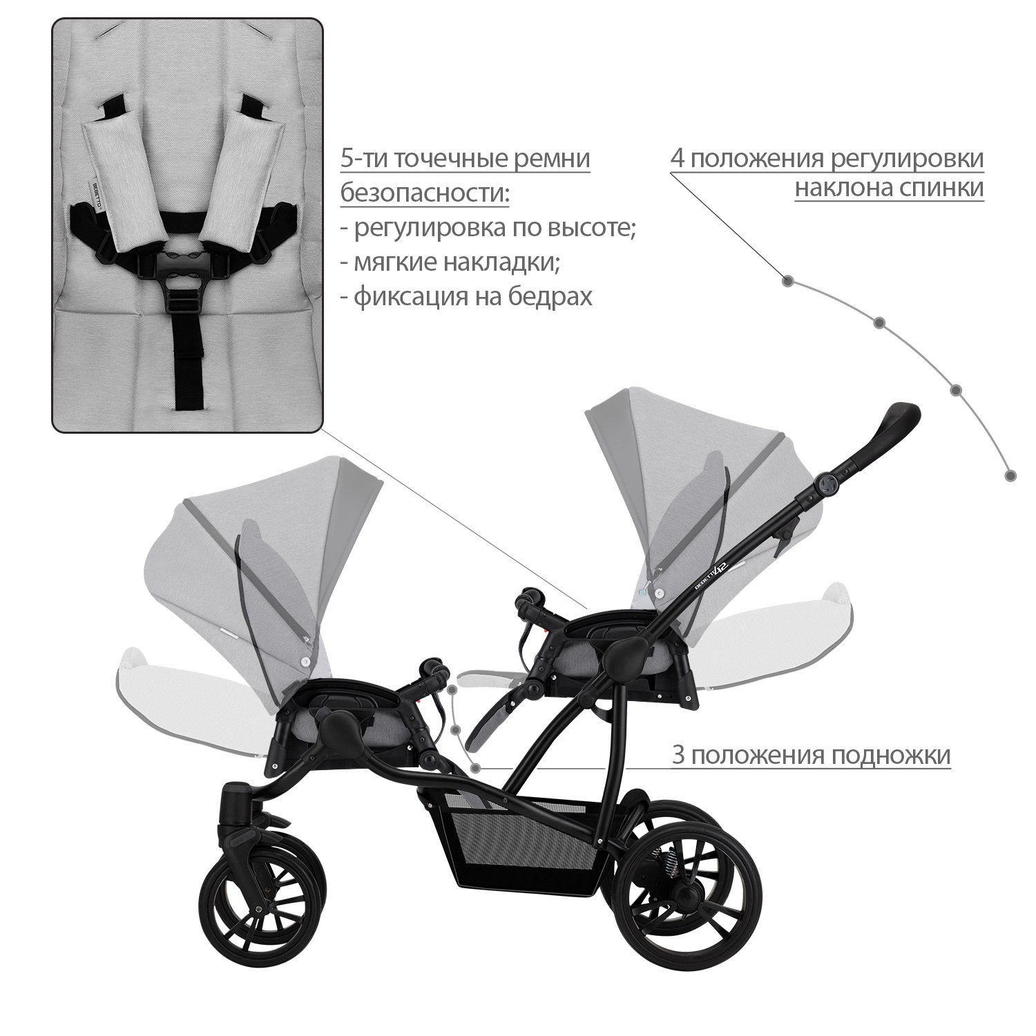 Коляска прогулочная для двойни Bebetto 42 Sport Comfort 04 шасси Черное 130502004