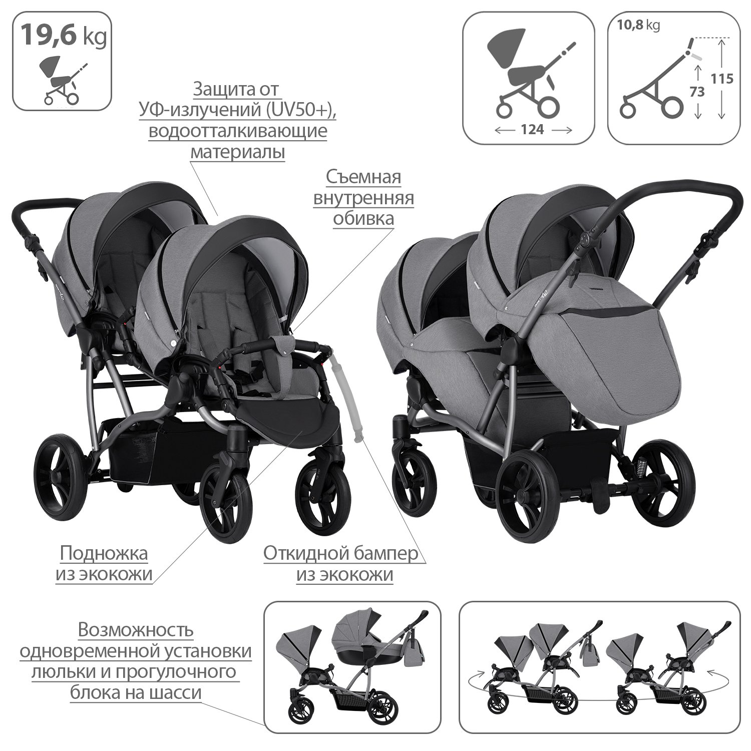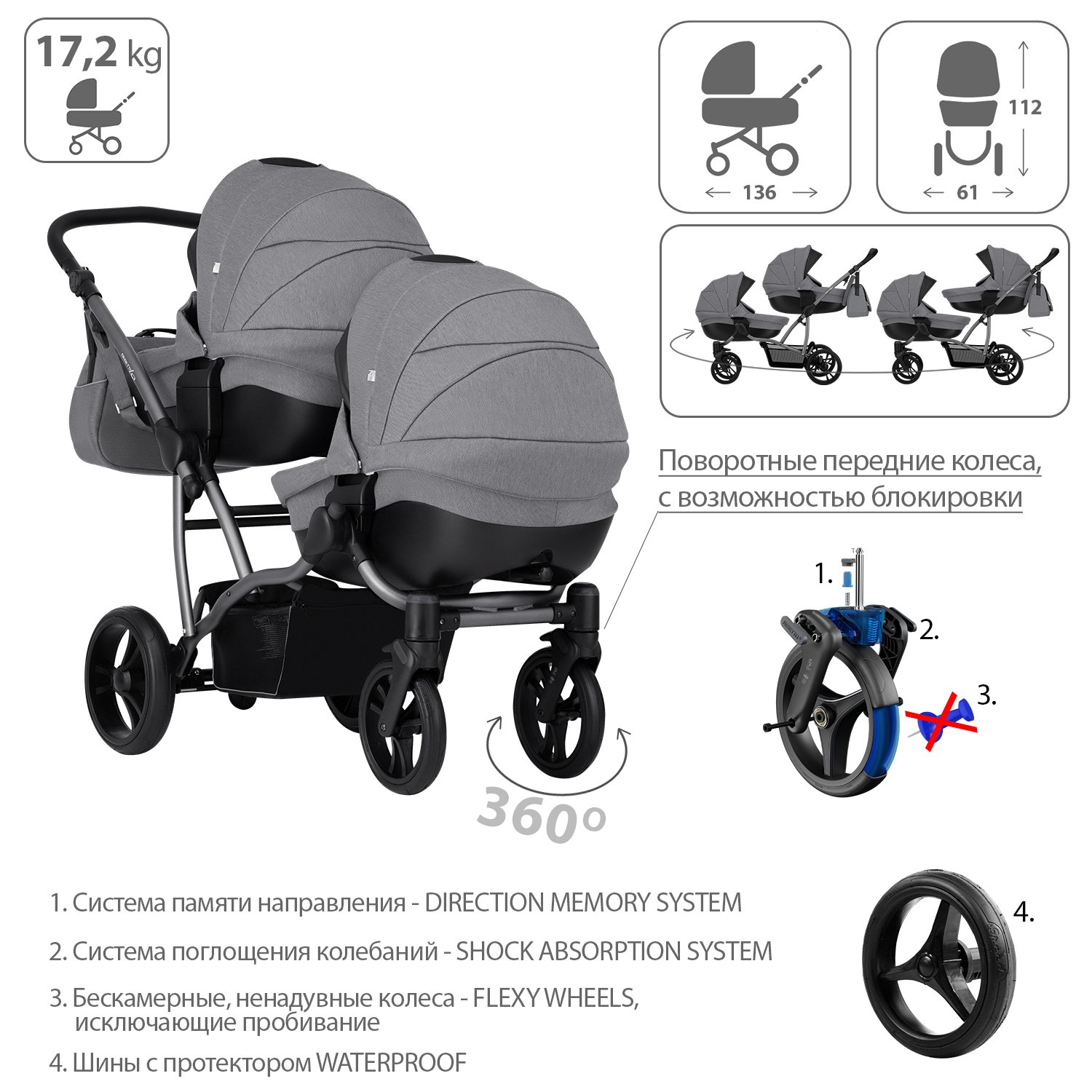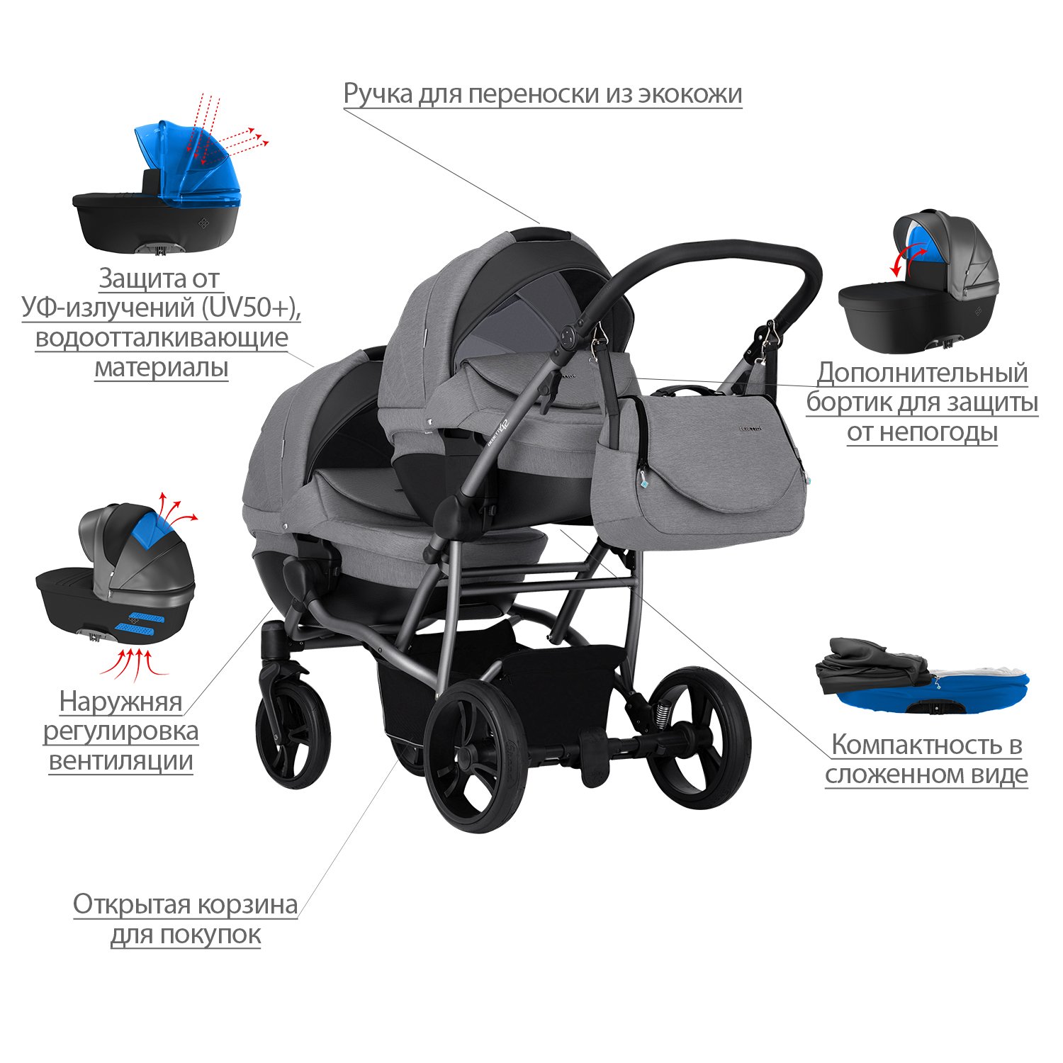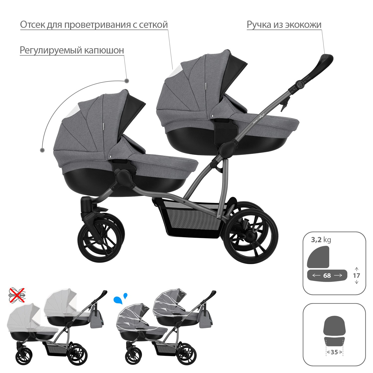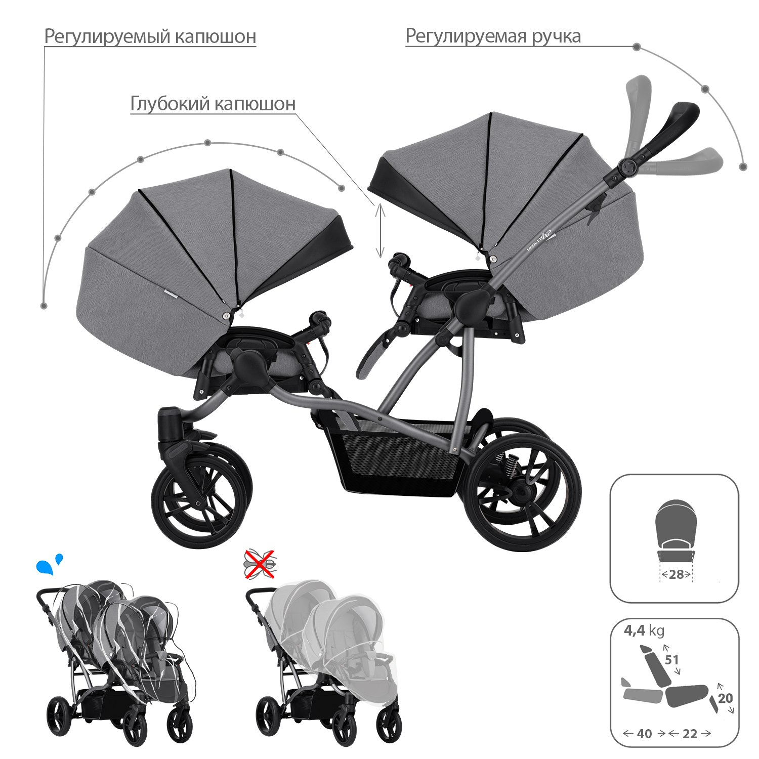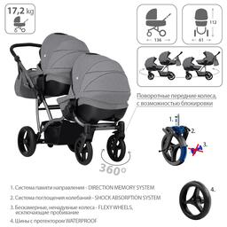 Коляска для двойни 2в1 Bebetto 42 Comfort 04 шасси Графит 130104004