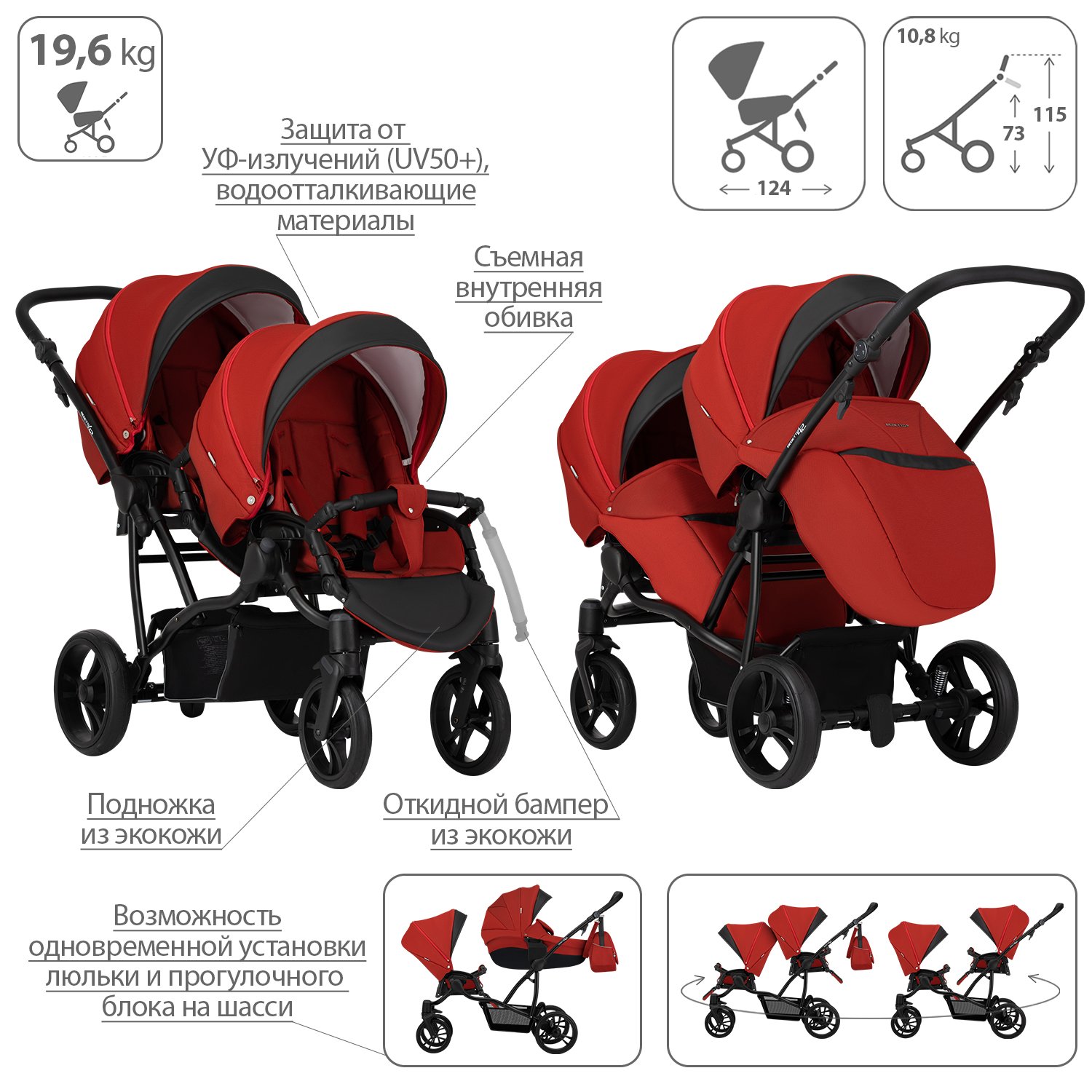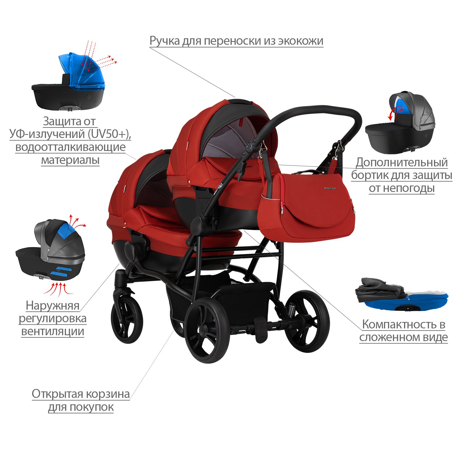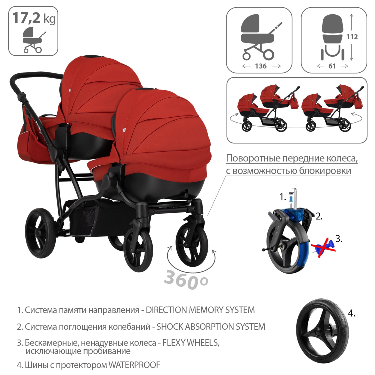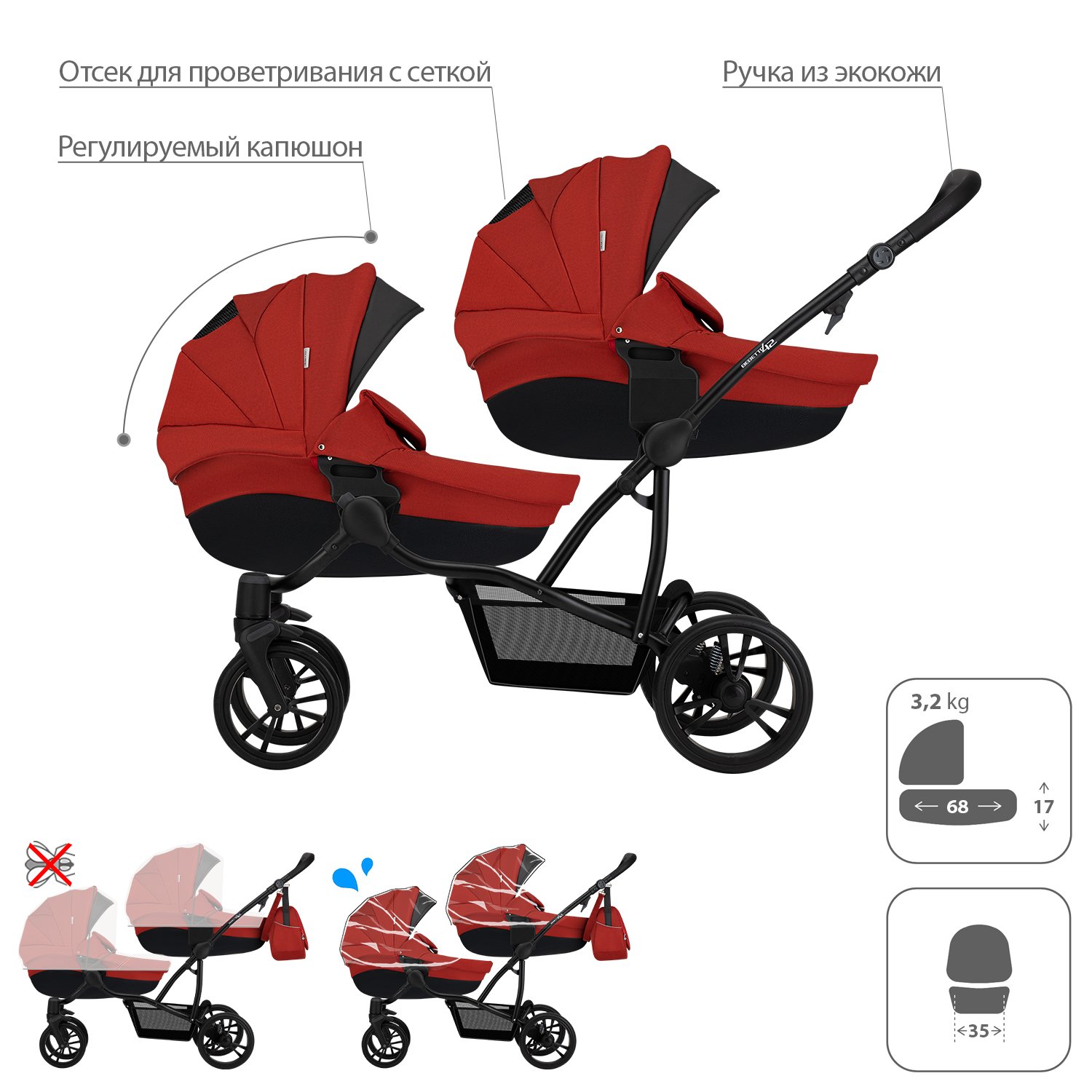 Коляска для двойни 2в1 Bebetto 42 Comfort 05 шасси Черное 130102005