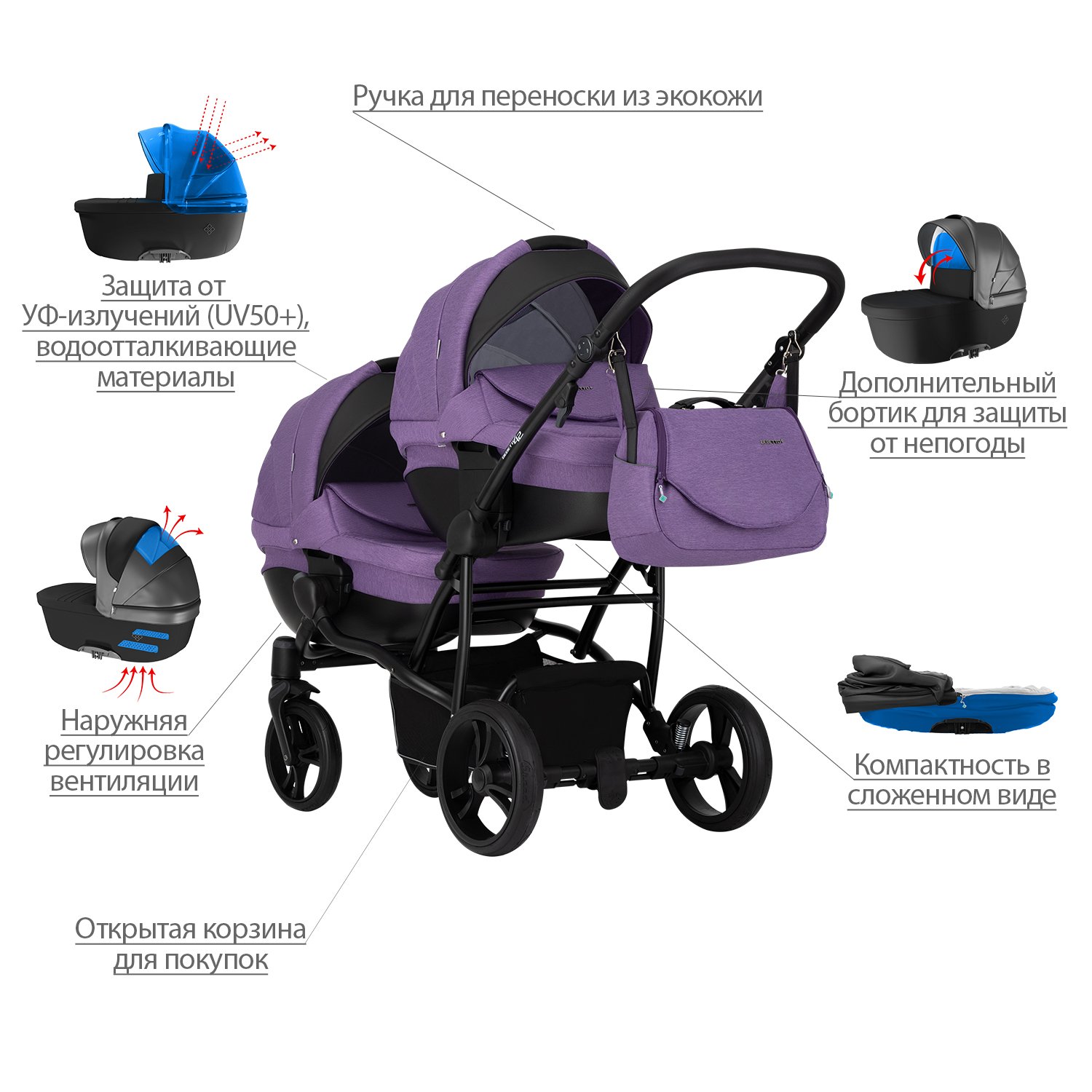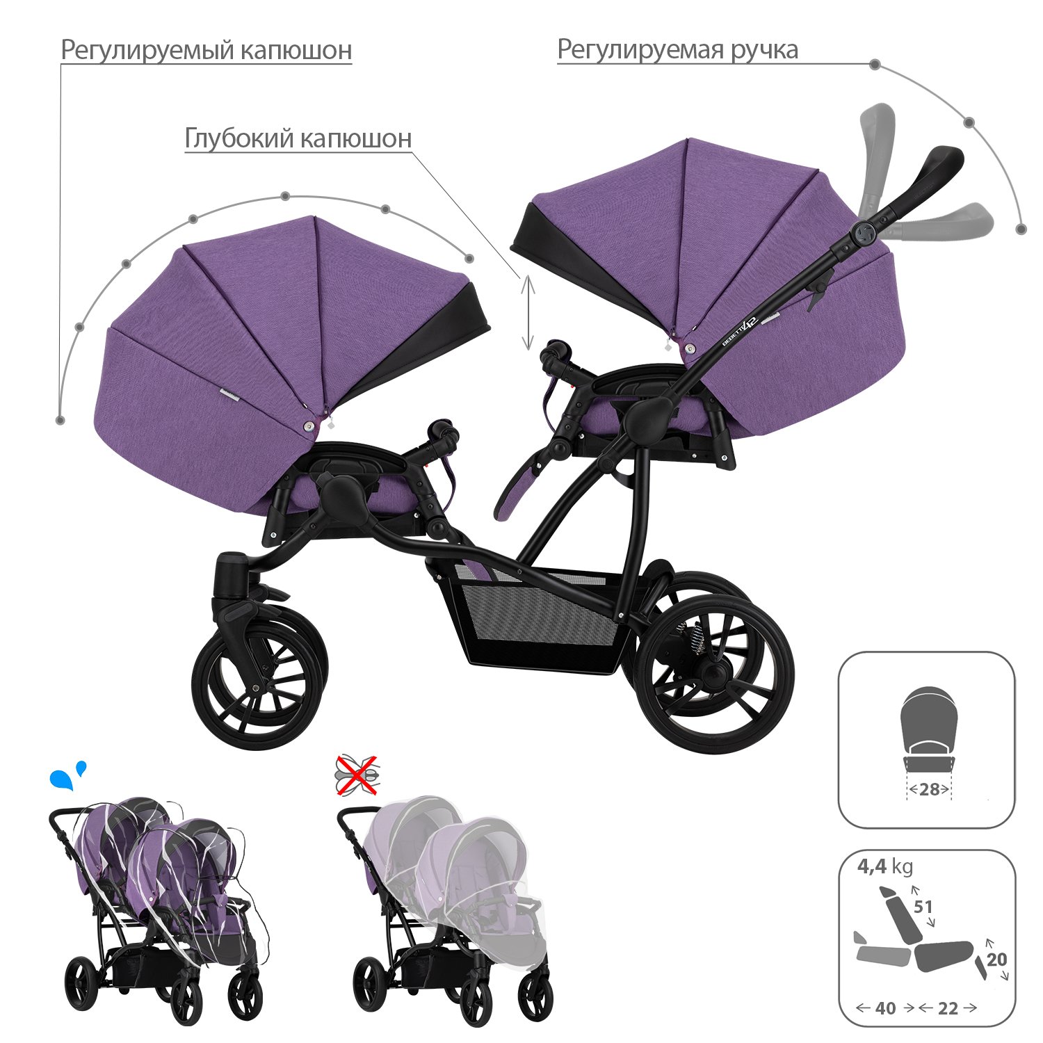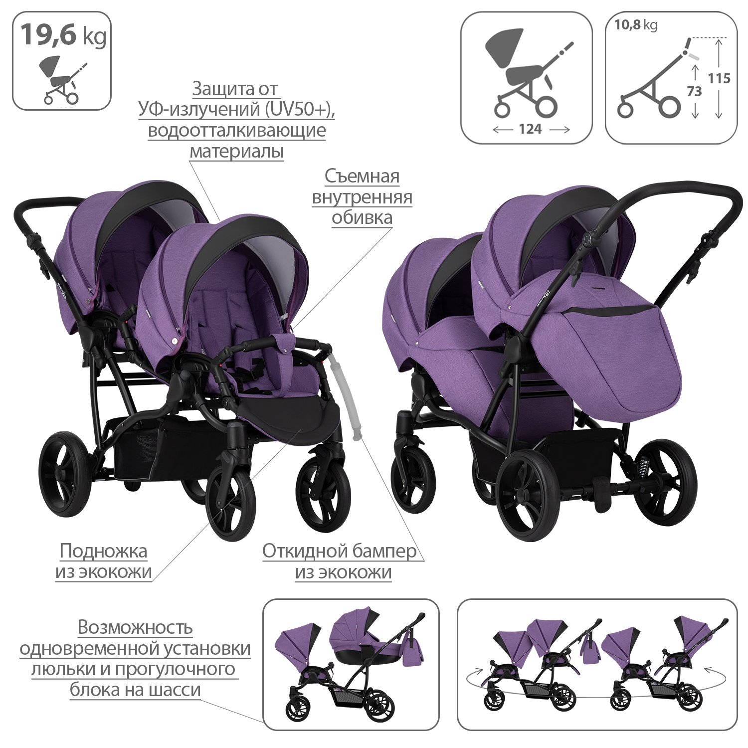 Коляска для двойни 2в1 Bebetto 42 Comfort 06 шасси Черное 130102006