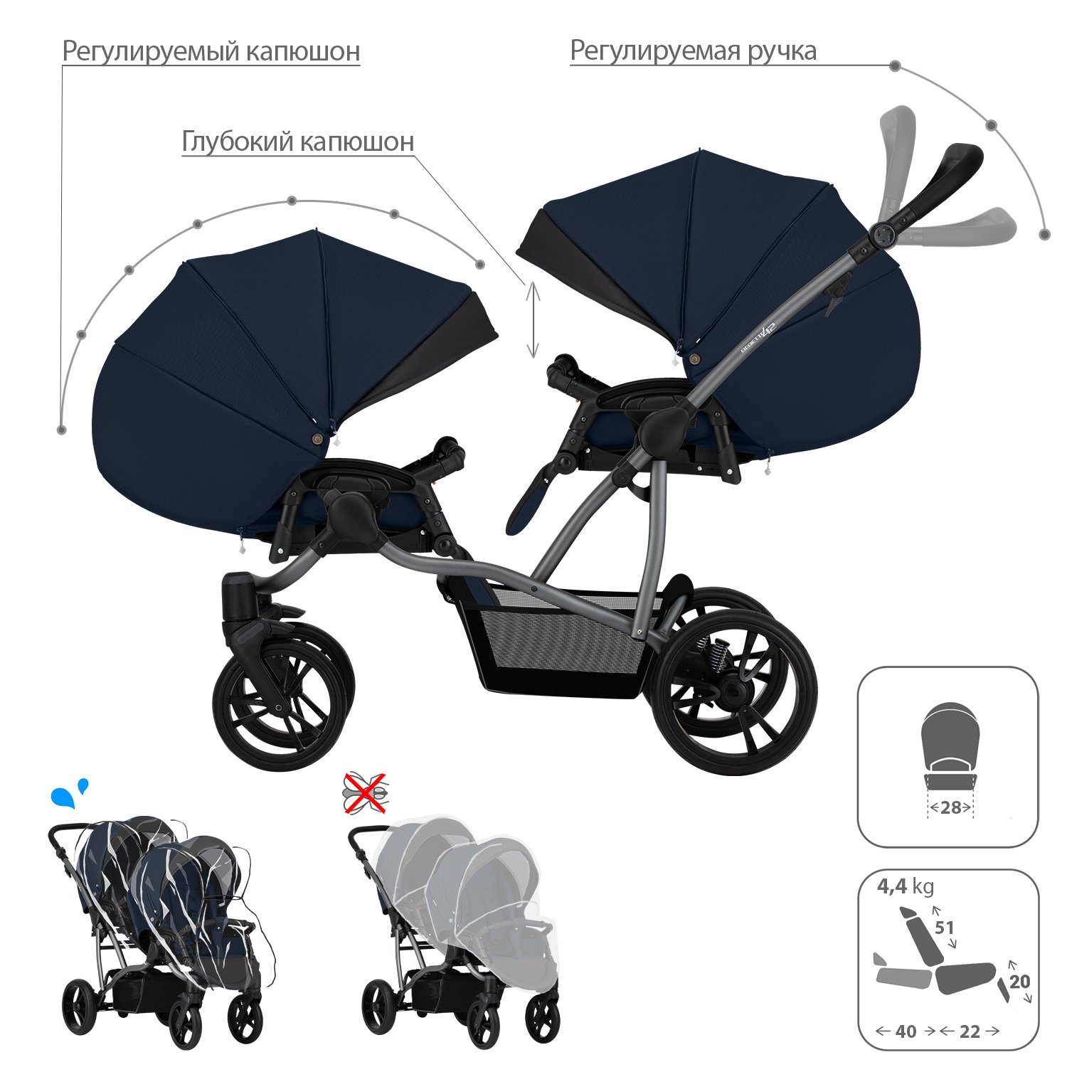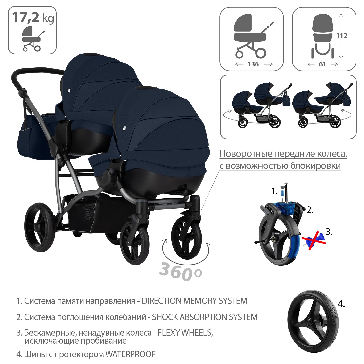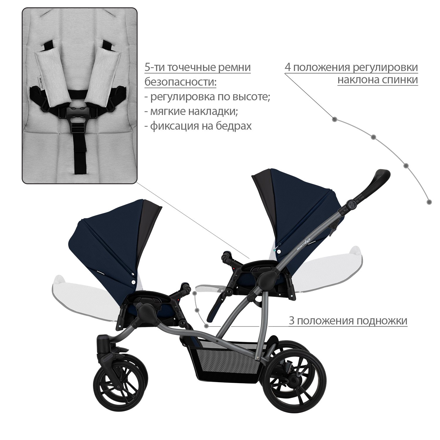 Коляска для двойни 2в1 Bebetto 42 Comfort 07 шасси Графит 130104007