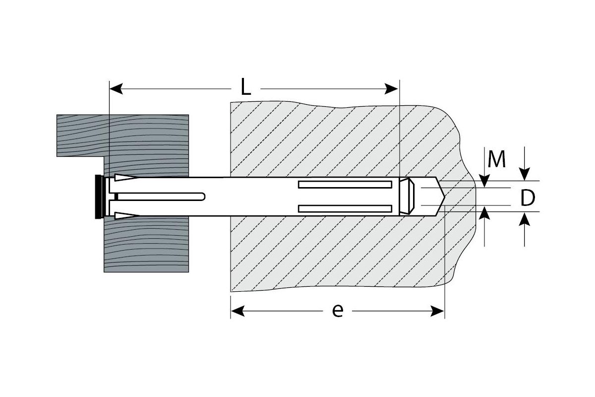 - Анкер устанавливается в предварительно просверленное отверстие, расклинивание происходит при вкручивании винта;