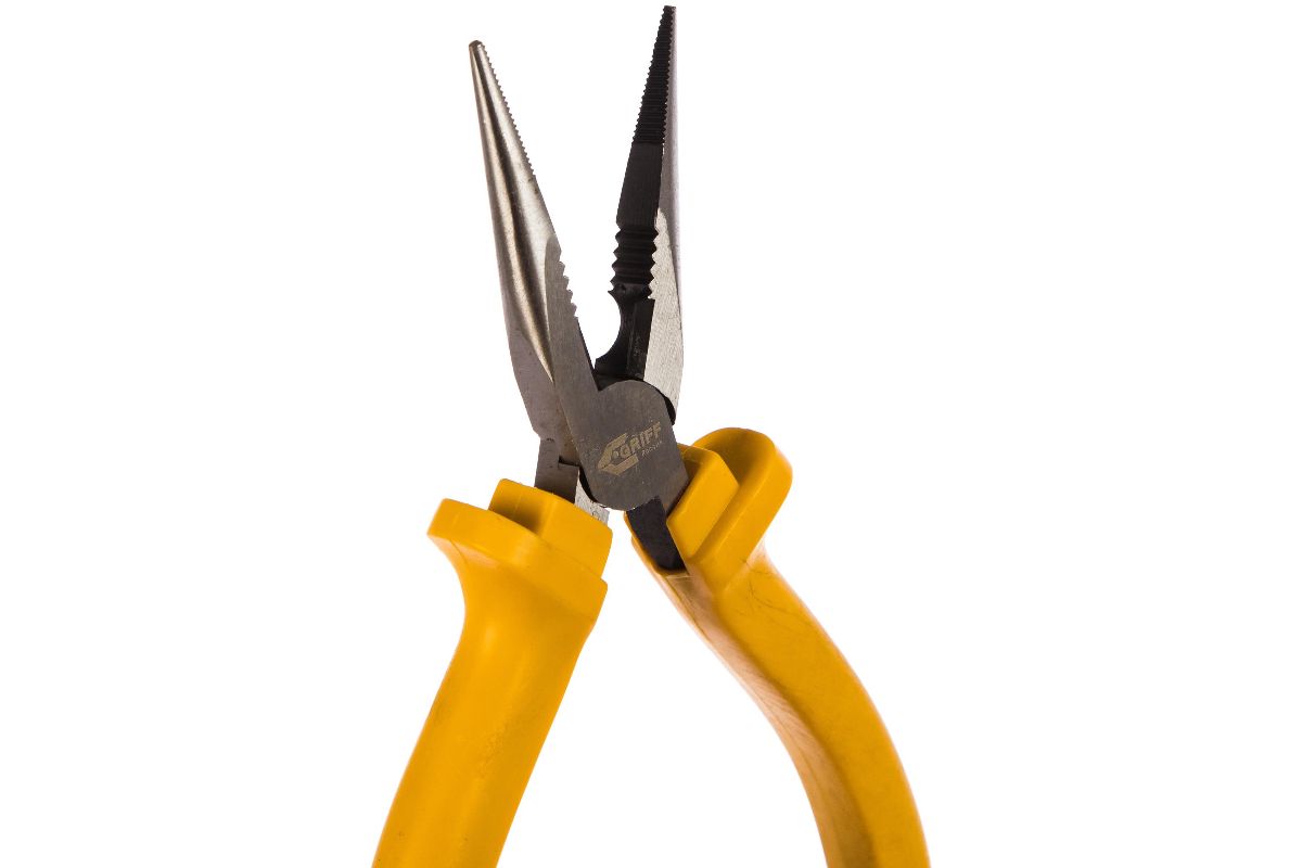 Плоскогубцы комбинированные с удлиненными закругленными губками, изолированная 1-компонентная ручка, полированная GRIFF 003927 используются при работе с электрикой.
