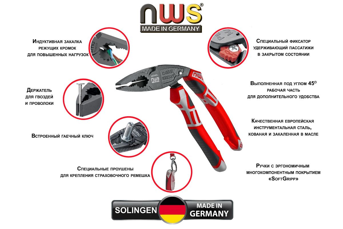 Пассатижи изогнутые NWS 1096-69-200 200мм Combi-Ergo 45