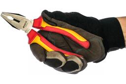 Пассатижи с изолированными рукоятками 6 дюймов, ручной диэлектрический инструмент для эксплуатации в области профессиональных электромонтажных работ под высоким напряжением (до 1000 В переменного тока). Пассатижи полностью изготовлены из хромованадиевой стали 60CR-V, имеют специальное покрытие из железоникелевого сплава для защиты от коррозии. Эргономичная форма двухкомпонентных рукояток обеспечивает уверенный обхват.